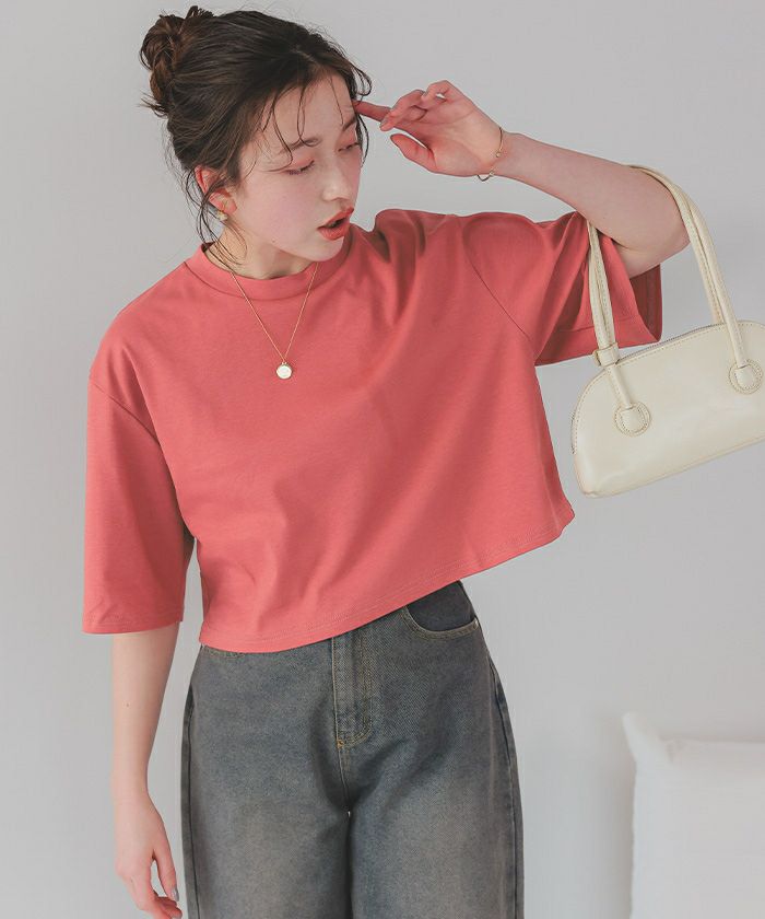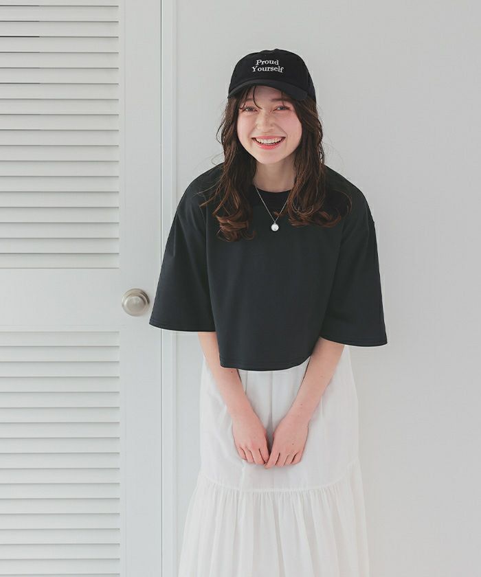 ・ベーシックなクルーネック・Tシャツをベースに、トレンドのワイド&ショートでお作りしたルーズさがかわいいTシャツ