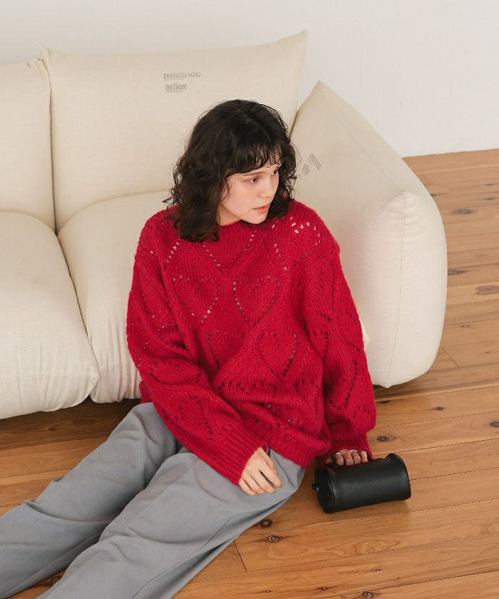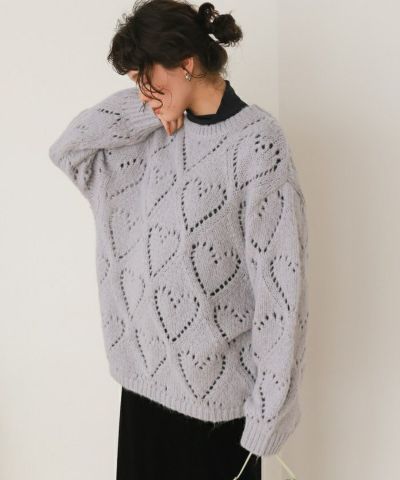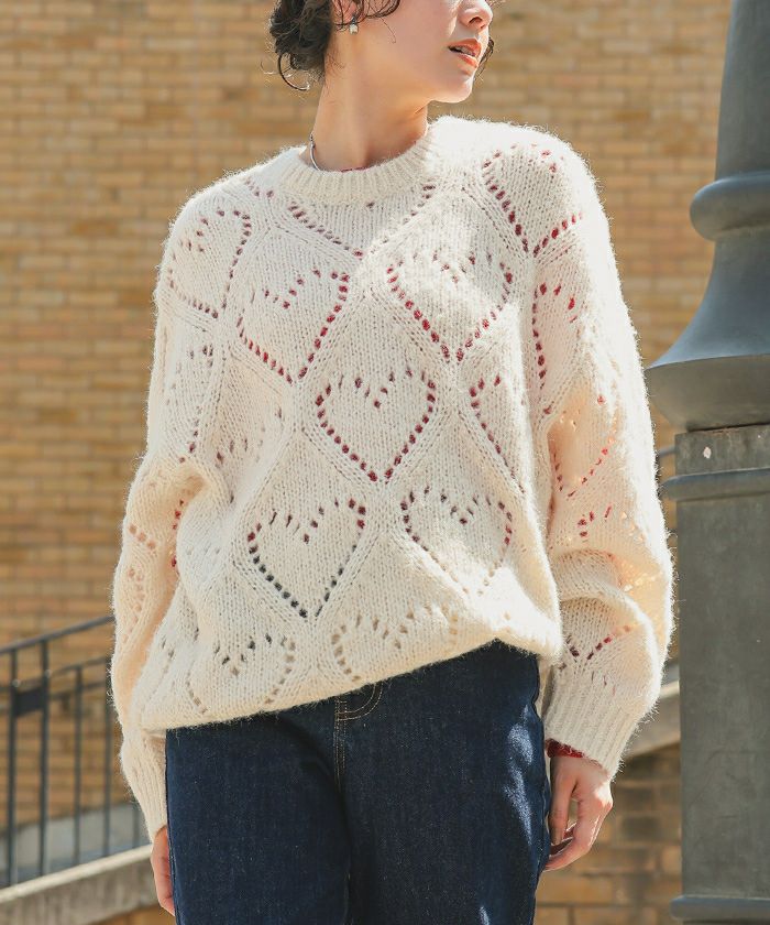 ハート透かし柄モヘアタッチニット