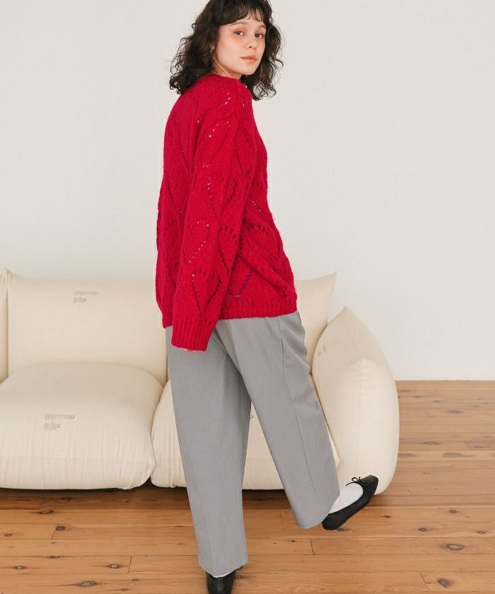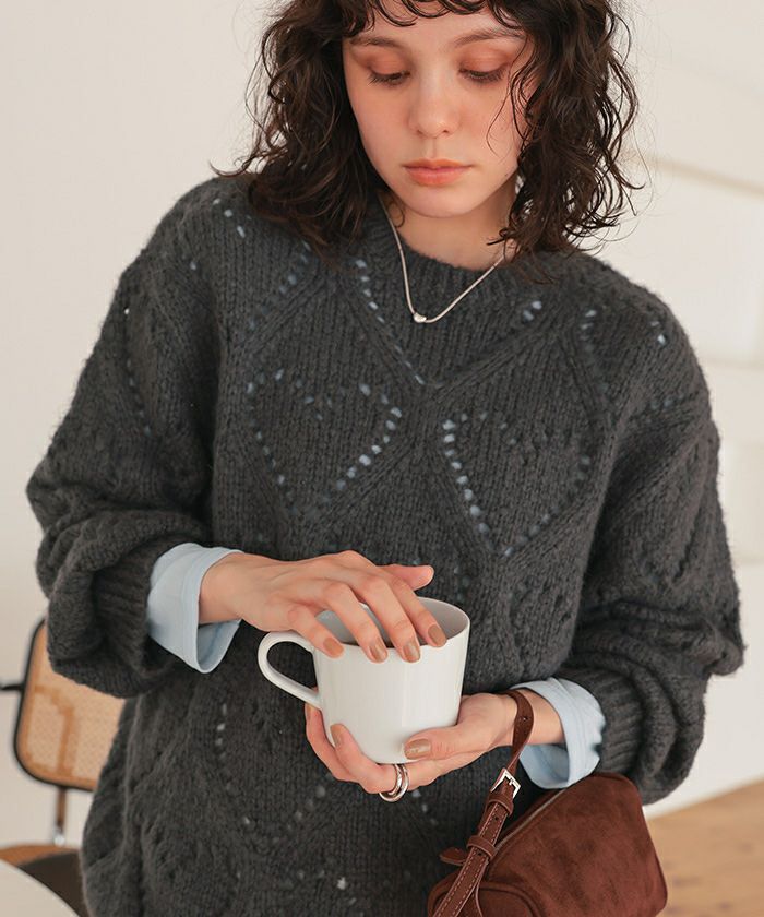・透かし柄の程よい抜け感が、大人可愛い印象に。1枚で華やぐ主役級ニット