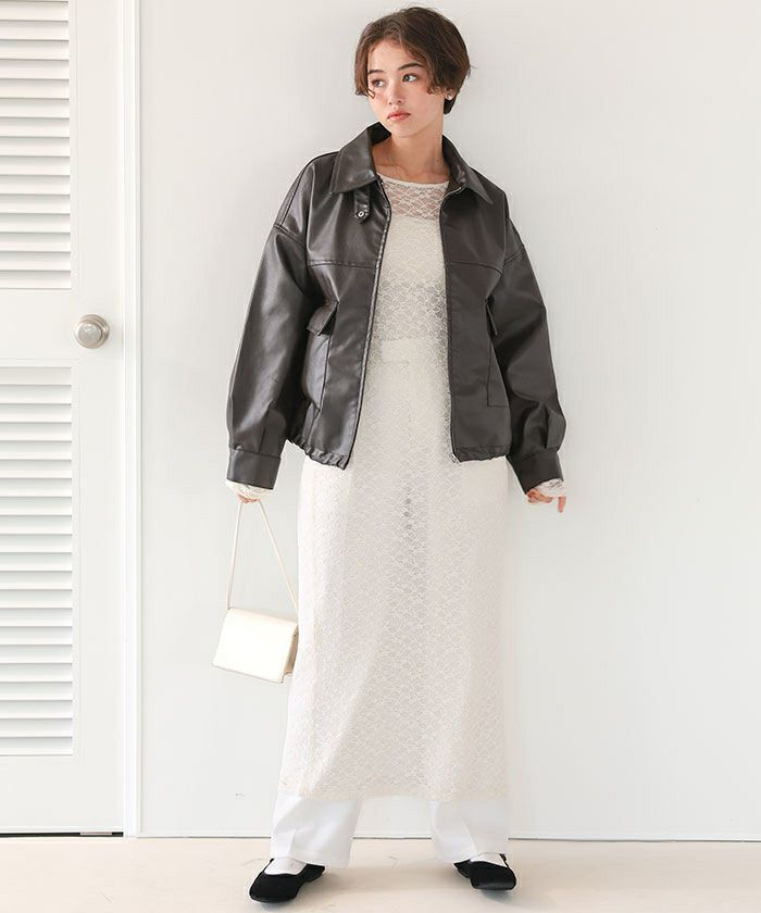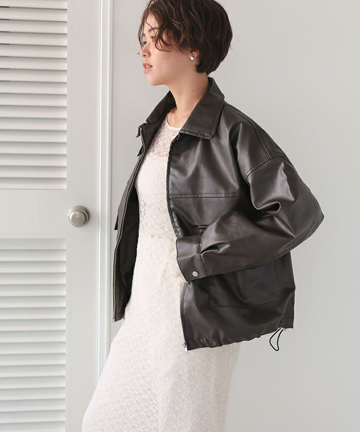 ・フェイクレザーの程よい光沢感が高級感をプラス。カジュアルにもきれいめにも着こなせる一着
