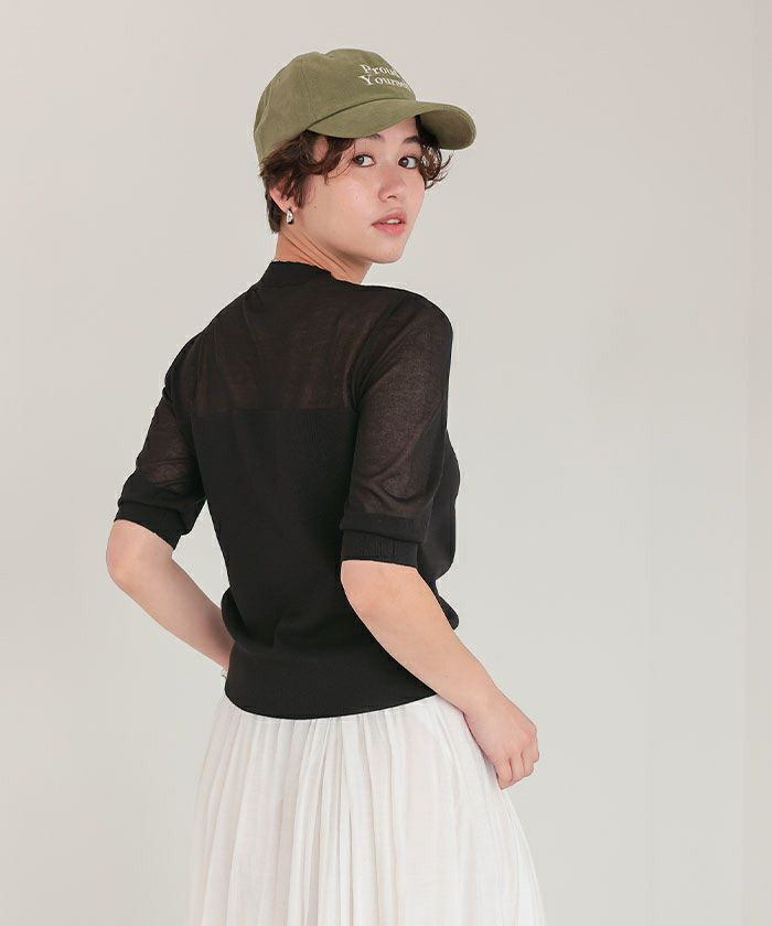 ・襟ぐりと袖のシアー感で女性らしく抜け感のある見映えに
