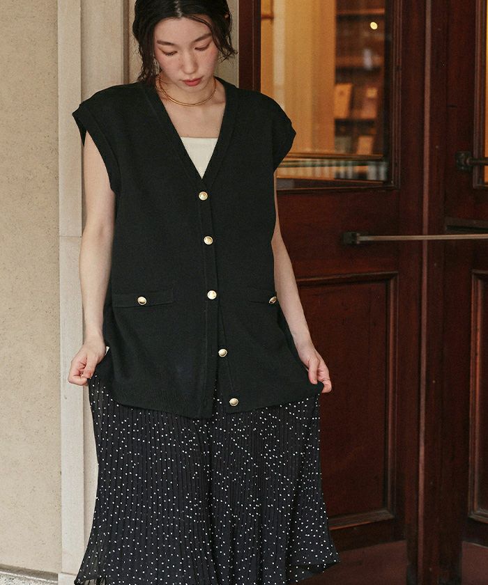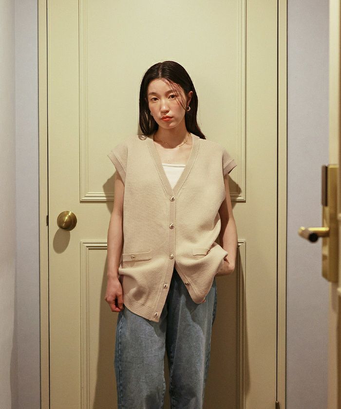 ・ゴールド釦がアクセントのオーバーサイズニットベスト