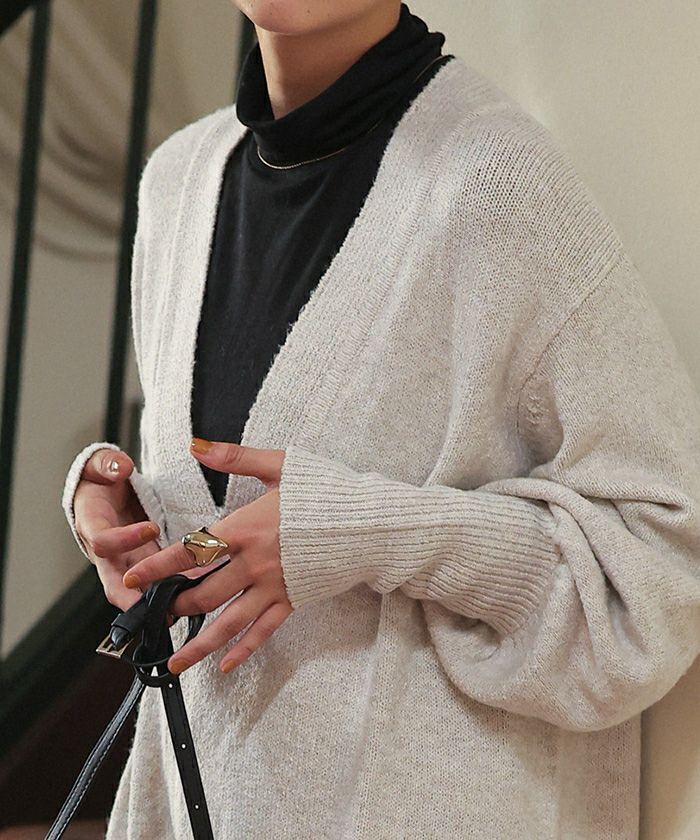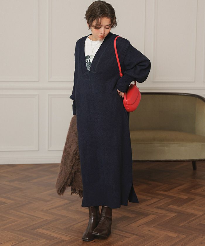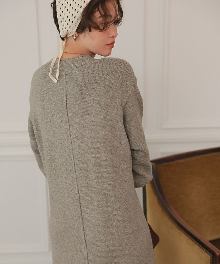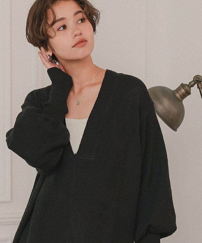 ざっくり開いたVネックがポイント。 長く着れるデザインです。