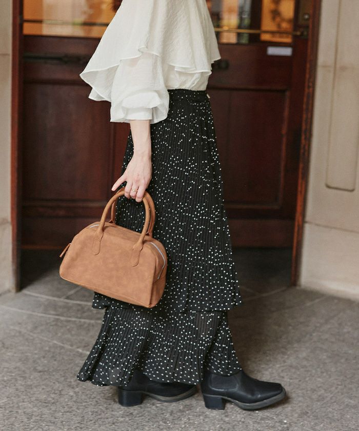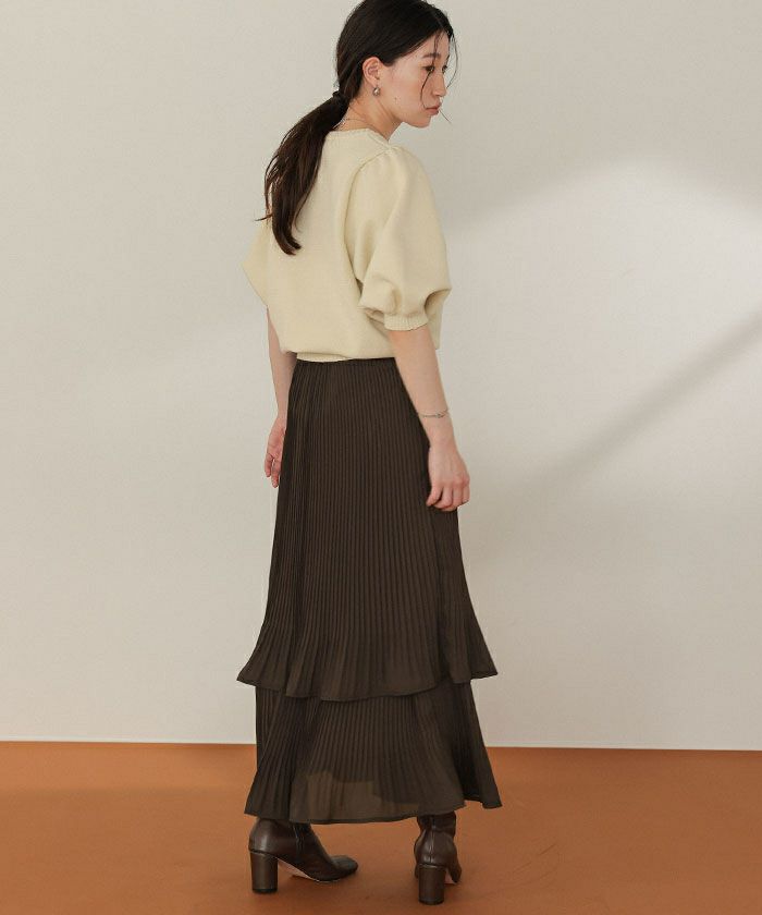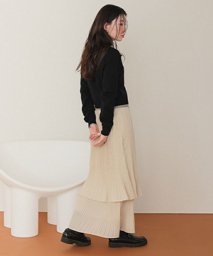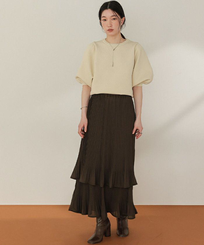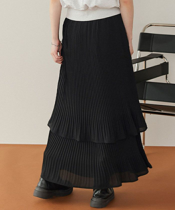 ・プリーツ素材が2つに重なった動きのあるティアードスカート
