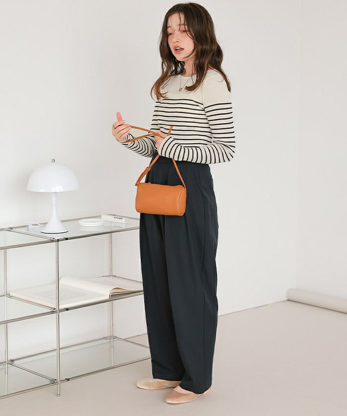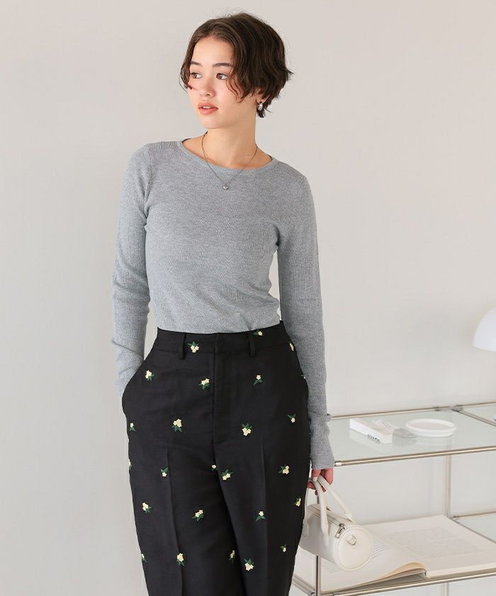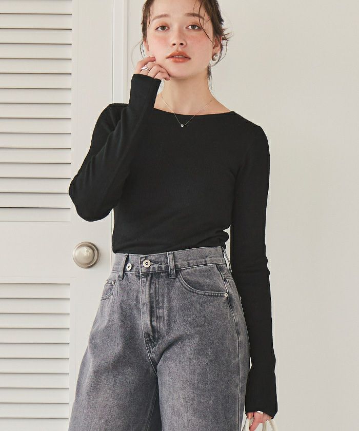チクチクしないウールブレンドボートネックリブニット