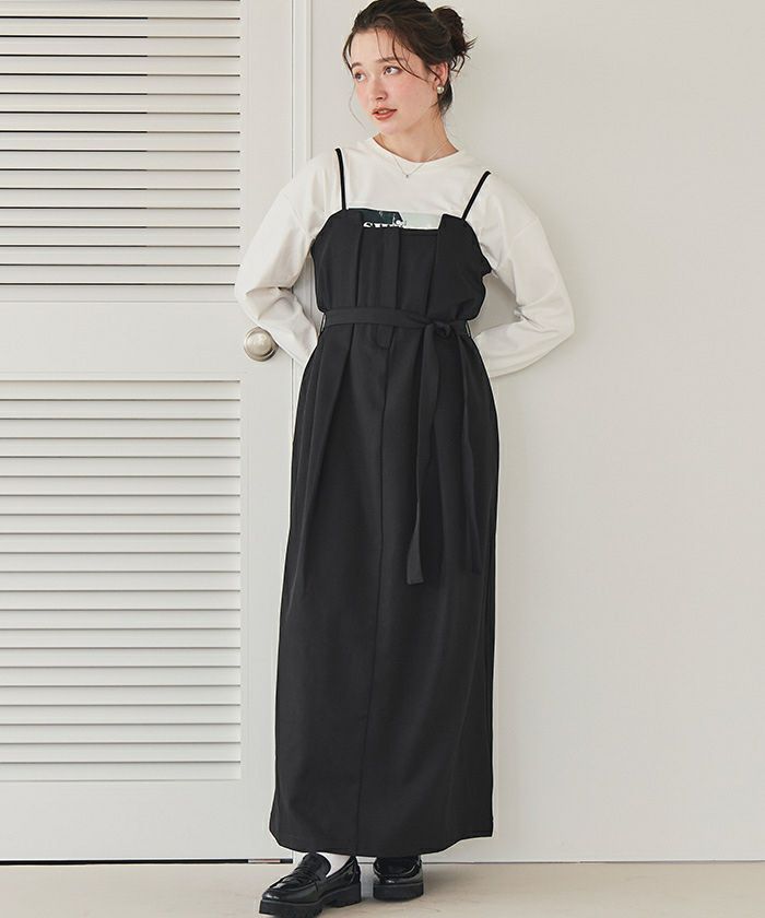 タックデザインキャミソールワンピース