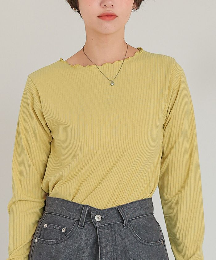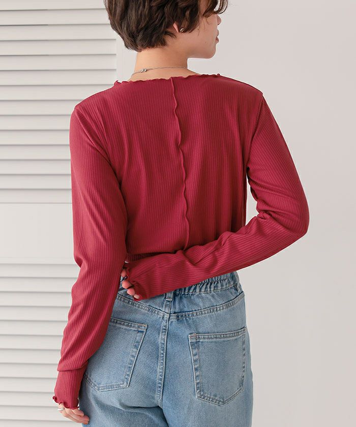 リブカットソーメローデザイントップス