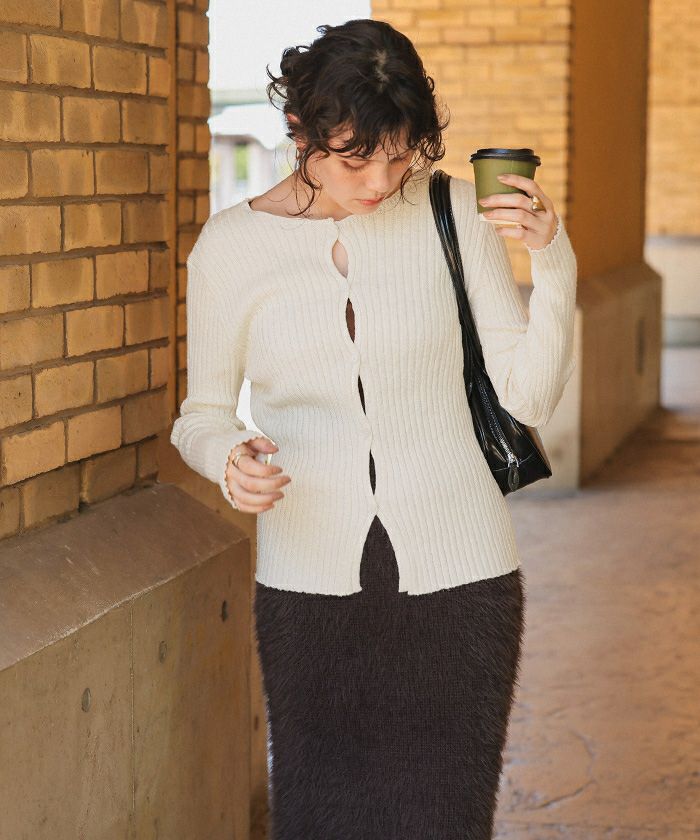 ・スリット開きがポイントのニットカーディガン