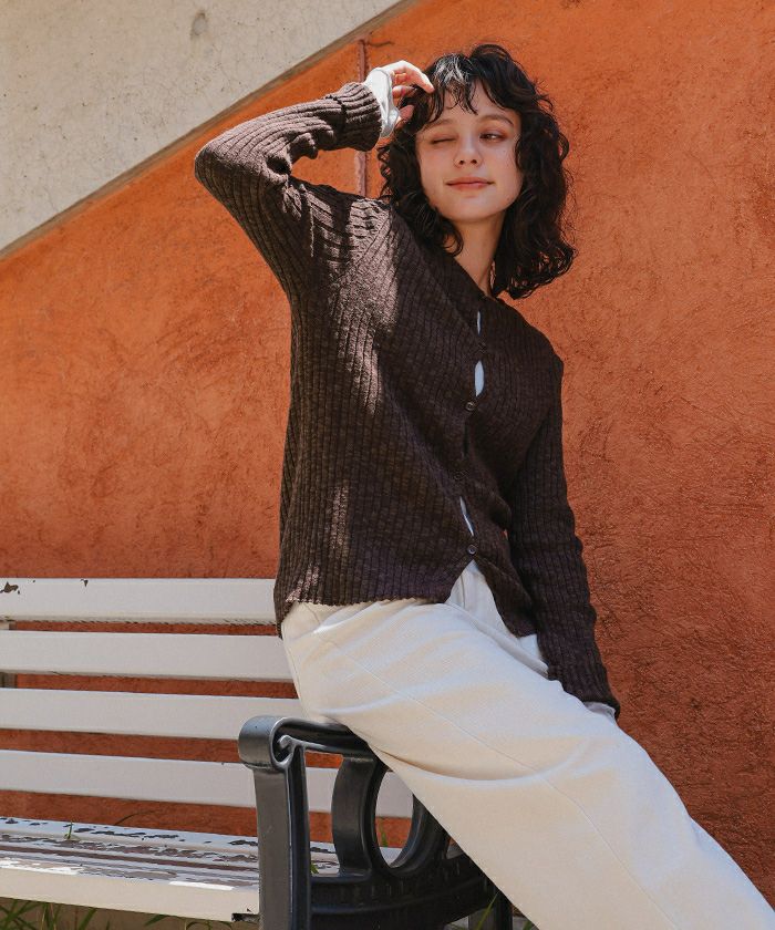 コンパクトリブニットカーディガン