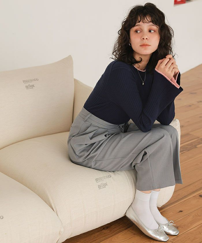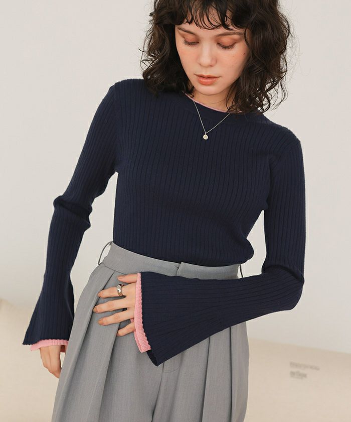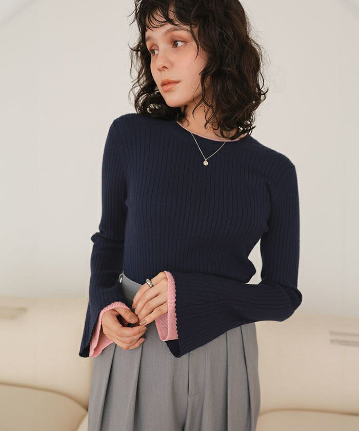配色シアードッキングフレアスリーブリブニット【メール便可/100】