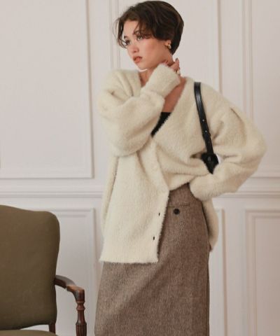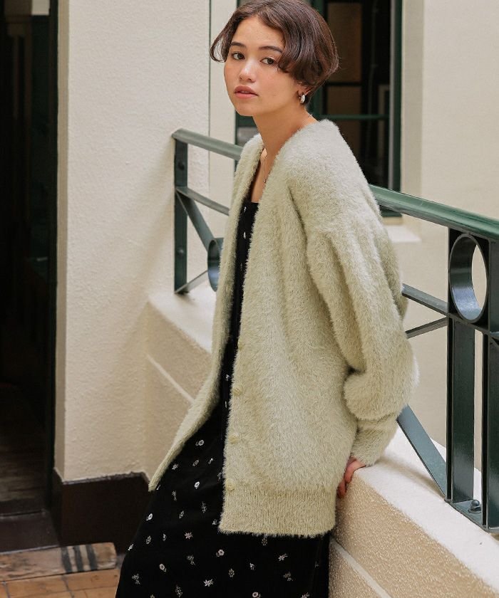 ミニシャギーニットカーディガン