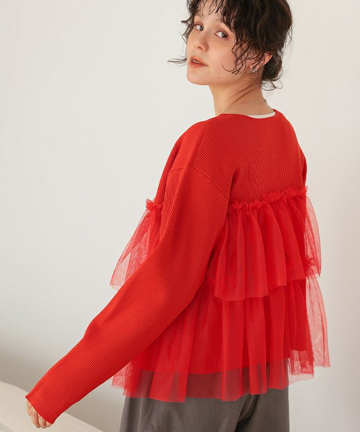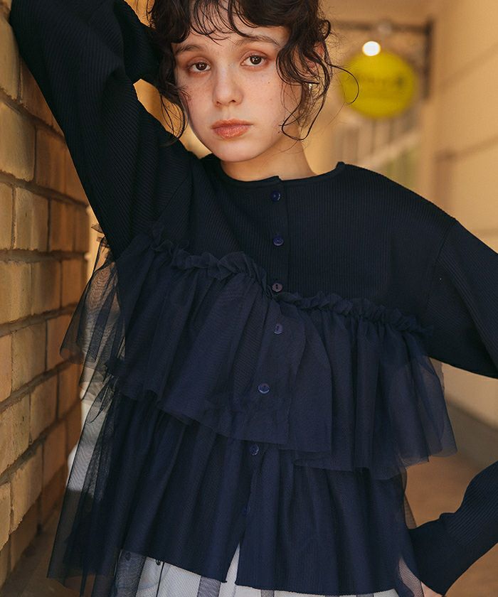 ・繊細なチュールが重なったニットカーディガン