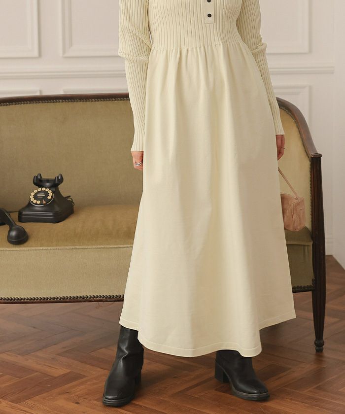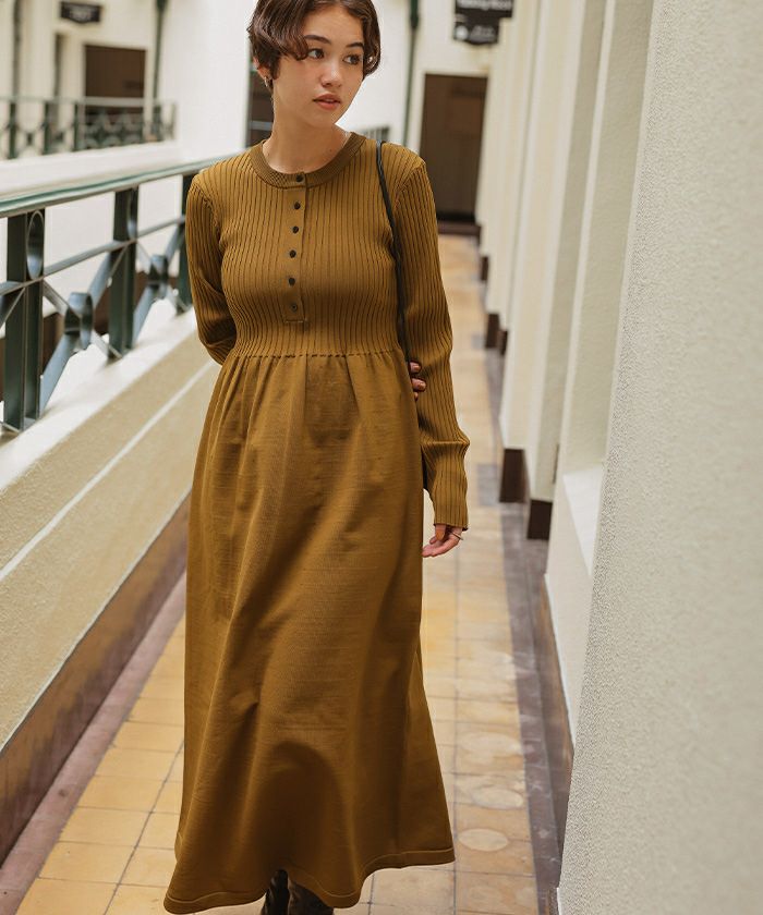 ヘンリーネックデザインニットワンピース