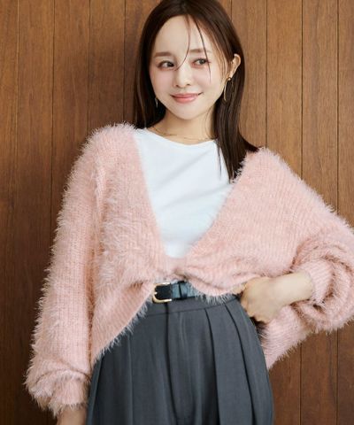 ふわふわの素材がとても気持ちいいです☆ ピンクの色も優しい色でかわいいです! 丈感だけ、168cmの私には短いので、どう合わせるか悩んでいますが、全体的にはかわいくオススメてます☆
