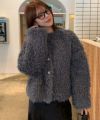 中綿が入っているので暖かさがあります。中に着込んでも大丈夫なくらいサイズに余裕があります。個人的に怒肩なので、結構ボリュームがあるように見えました。ファーが柔らかいので、使っていくうちに毛が寝てしまうように思います。ボタンが軽いのではめたり、外したりがやりにくかったです。濃いめの色のデニムに合わせて着てみましたが、ブラウンが明るめなので、見た目重すぎずかわいく着れます。プードル感が可愛くて気に入りました。今シーズンたくさん着たいと思います。