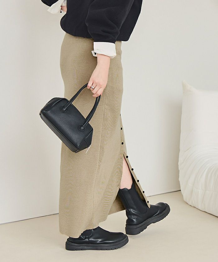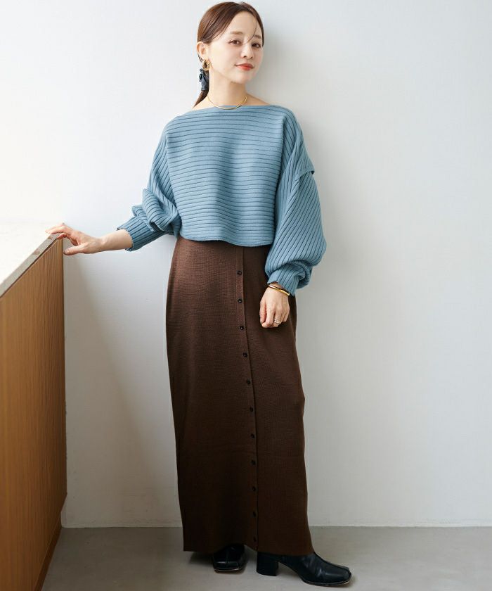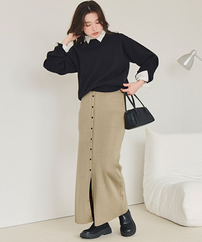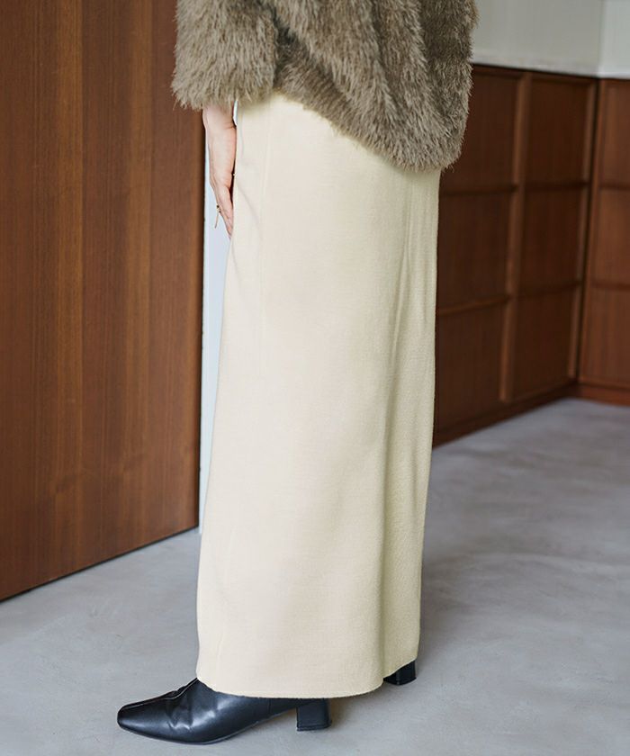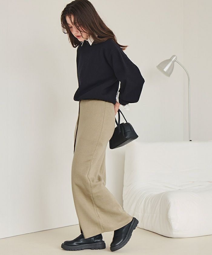 ・ニット素材ながらも程よく厚みがあり、下半身のラインを拾いにくいのが嬉しいポイント