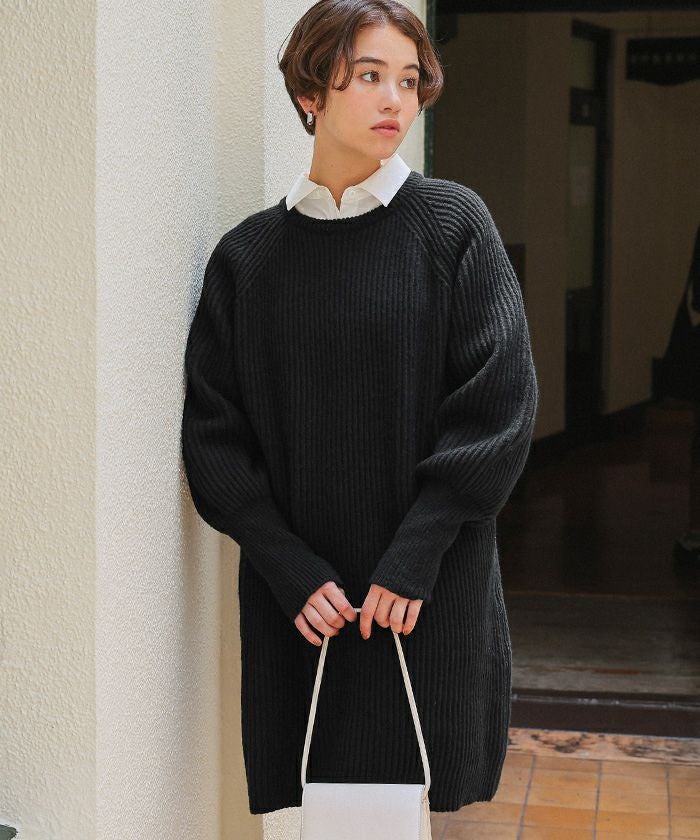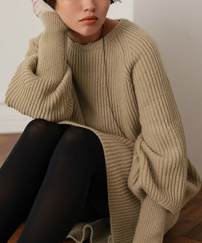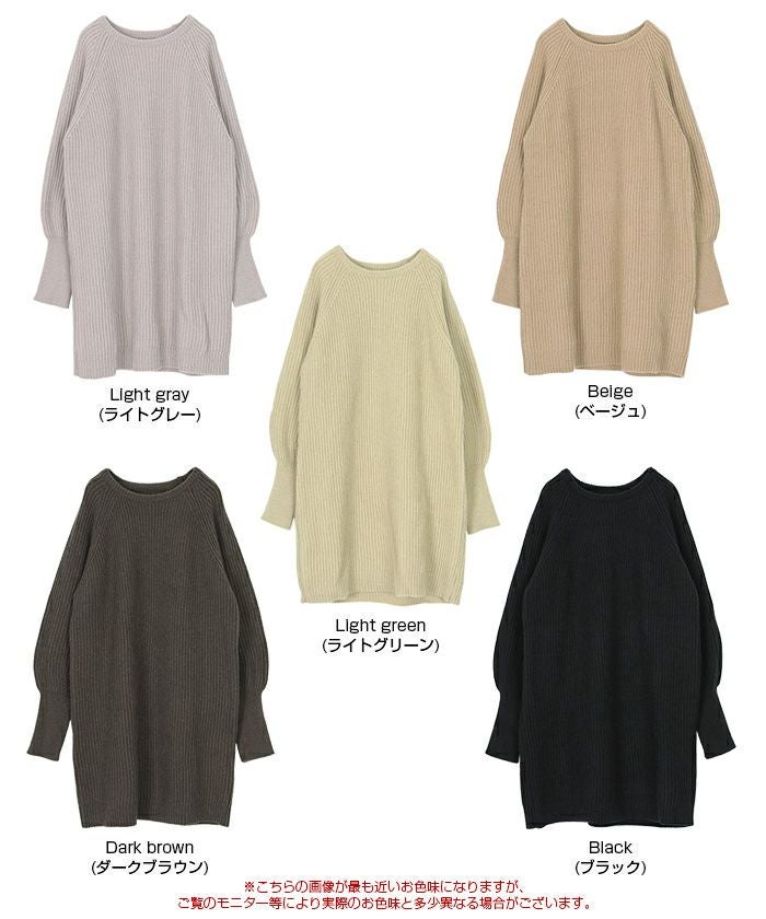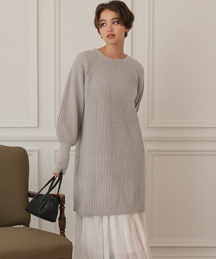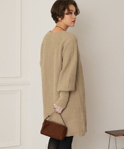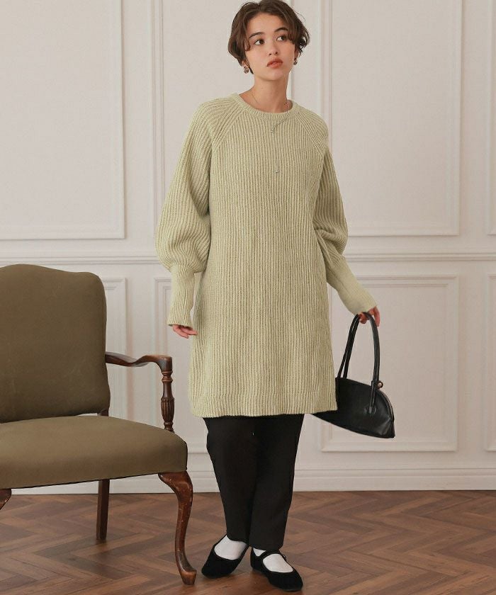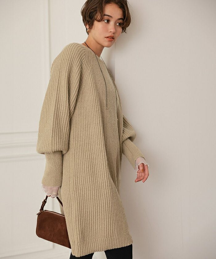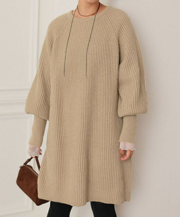 ボリュームスリーブニットミニワンピース