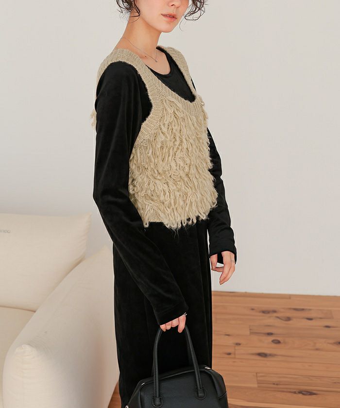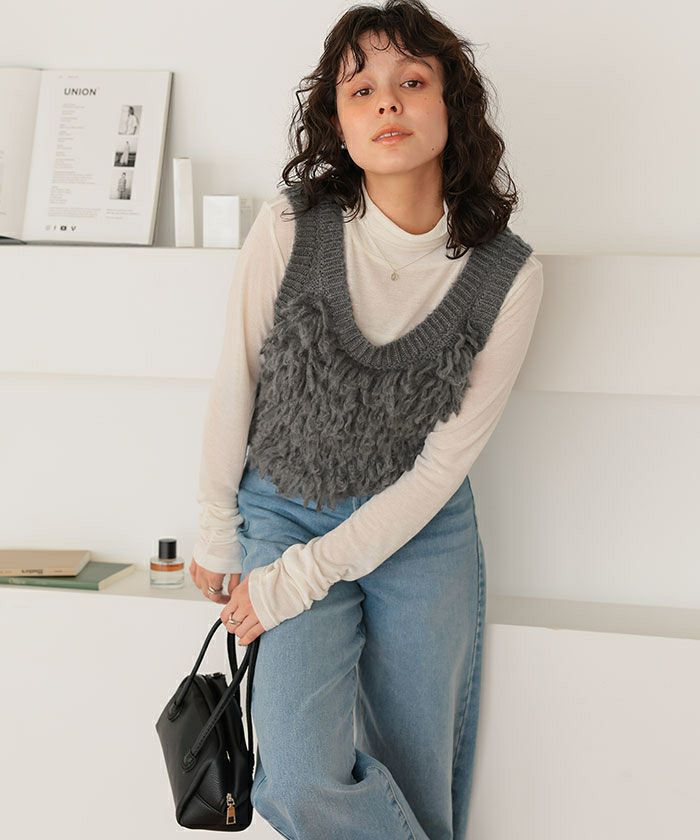 ・華やかに決まるループニットベスト
