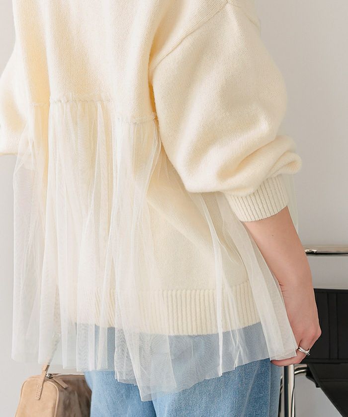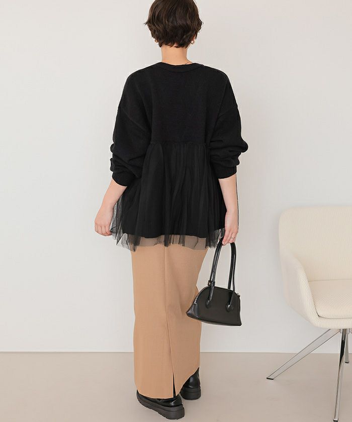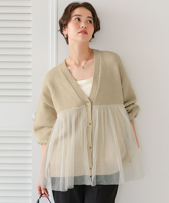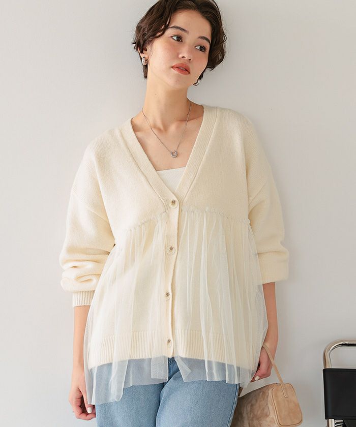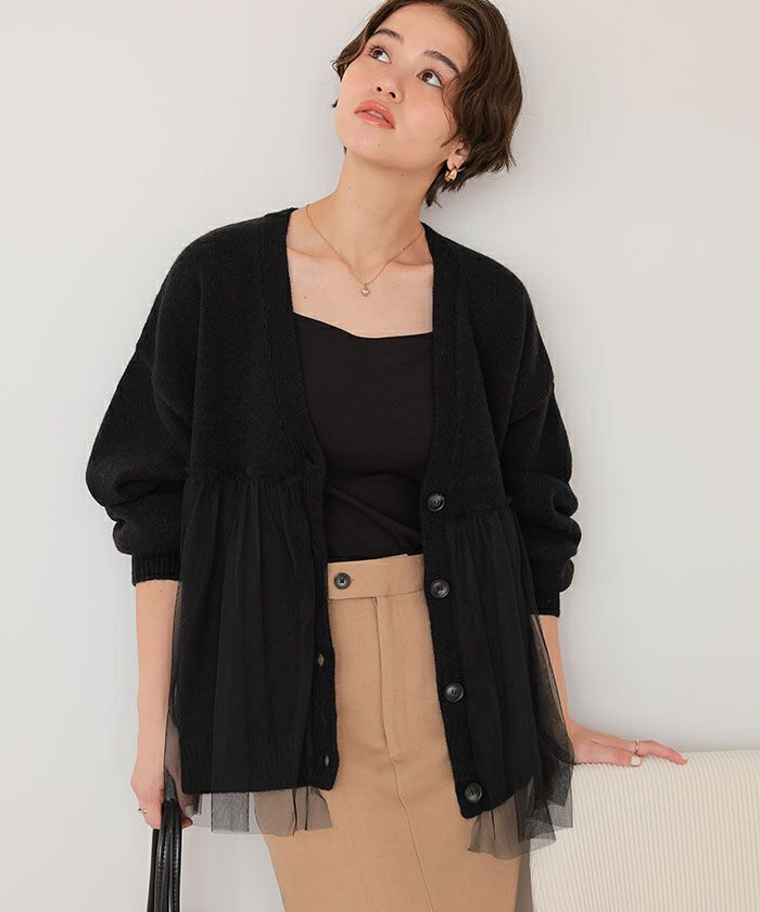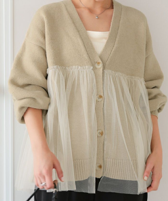 ■【titivate】【期間限定★SALE】 チュールドッキングVネックニットカーディガン