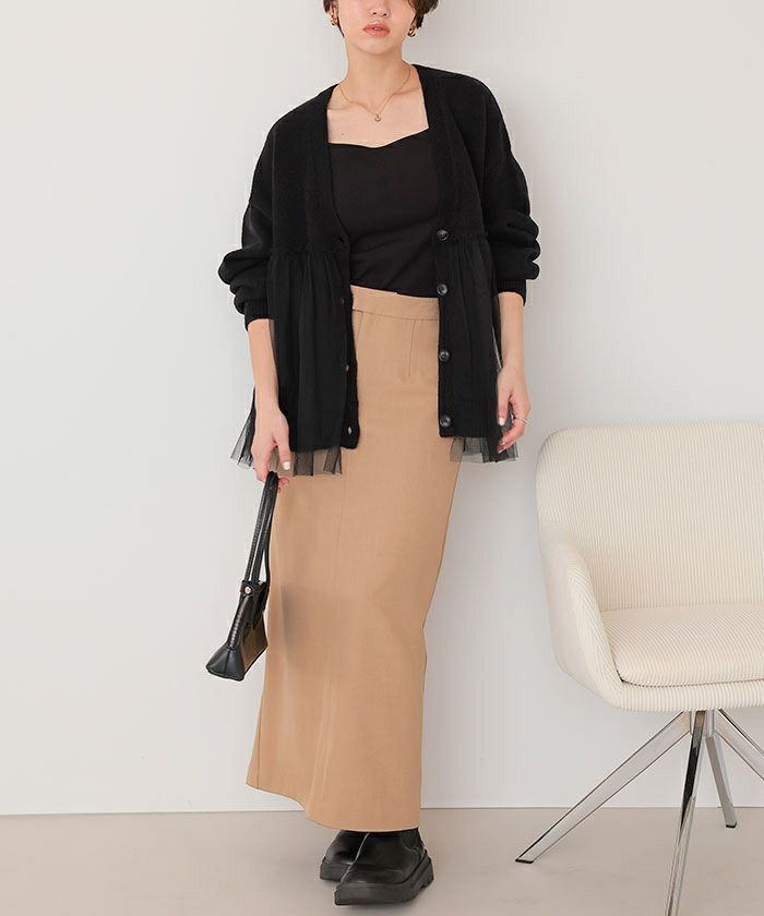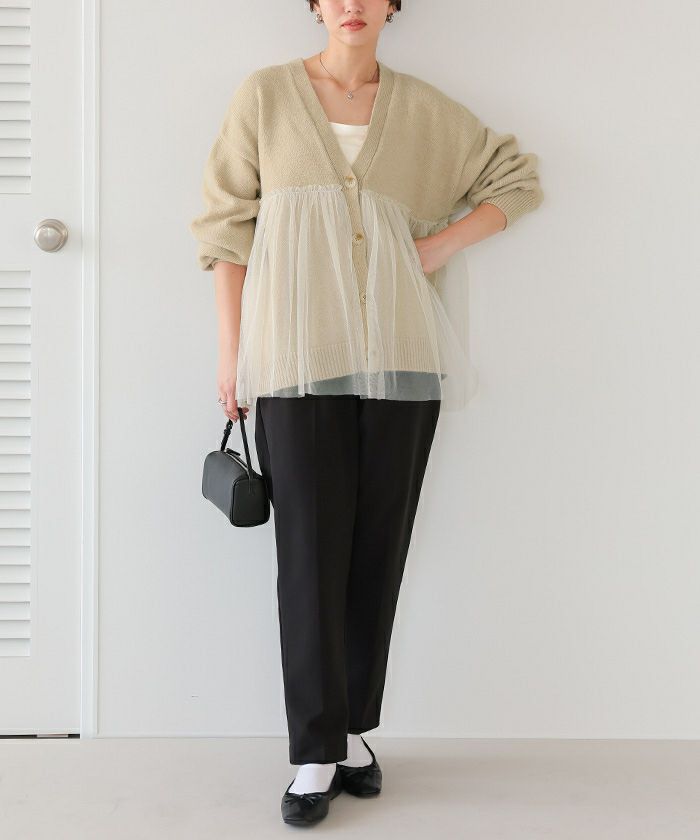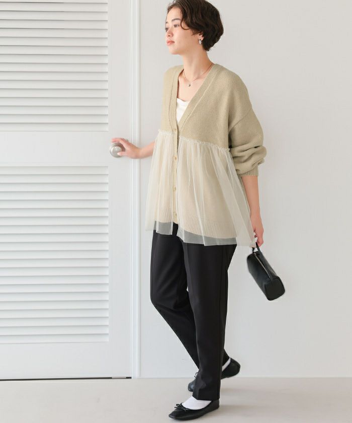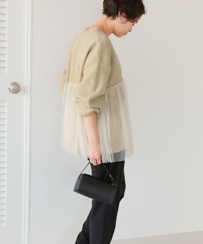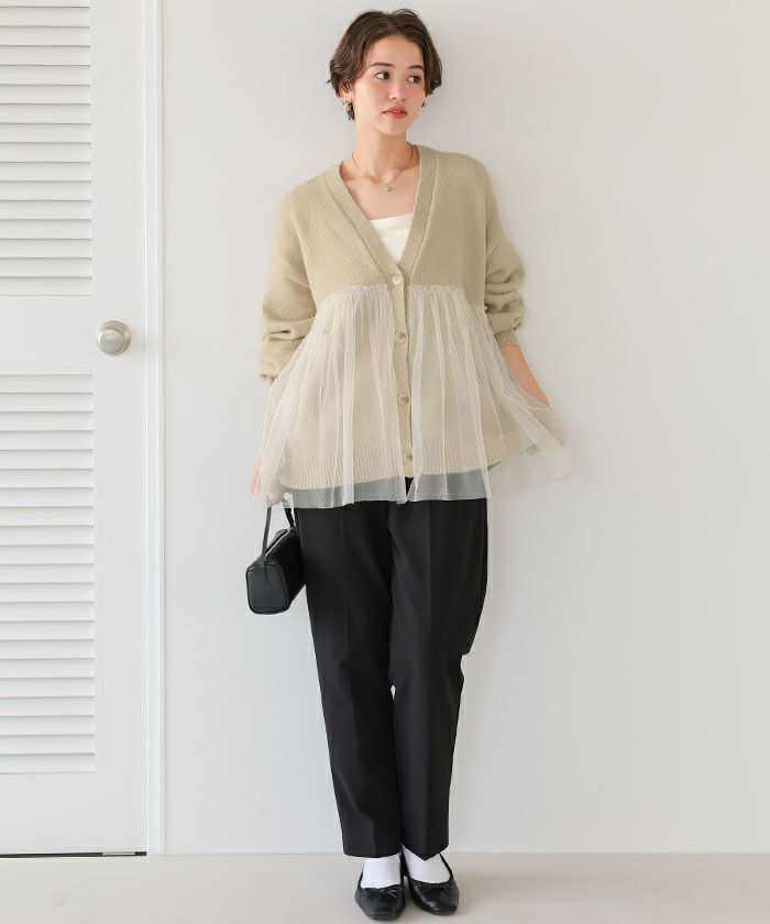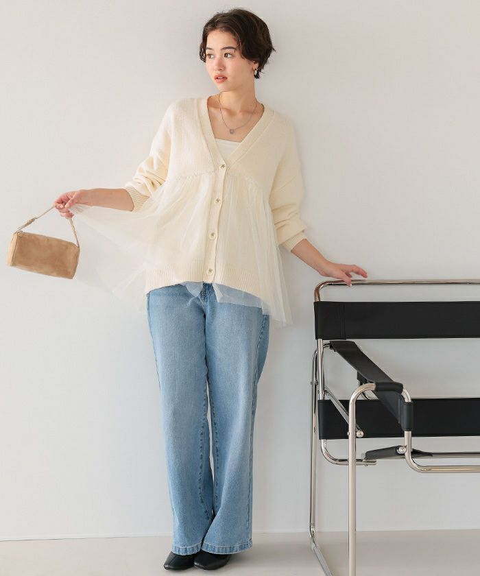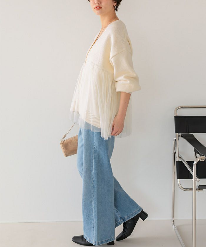■【titivate】【期間限定★SALE】 チュールドッキングVネックニットカーディガン