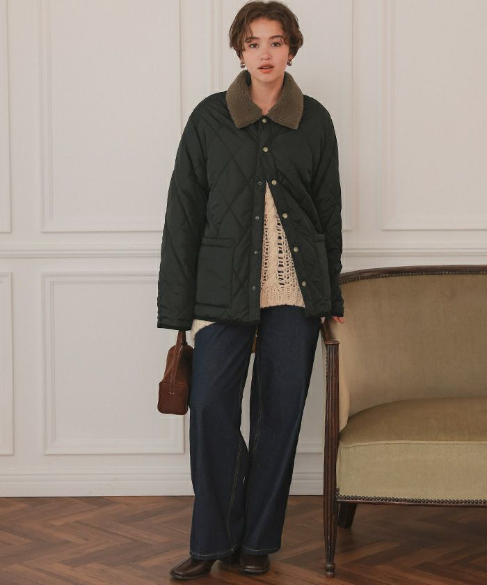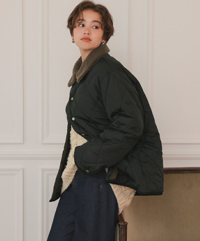 配色襟付きキルティングジャケット
