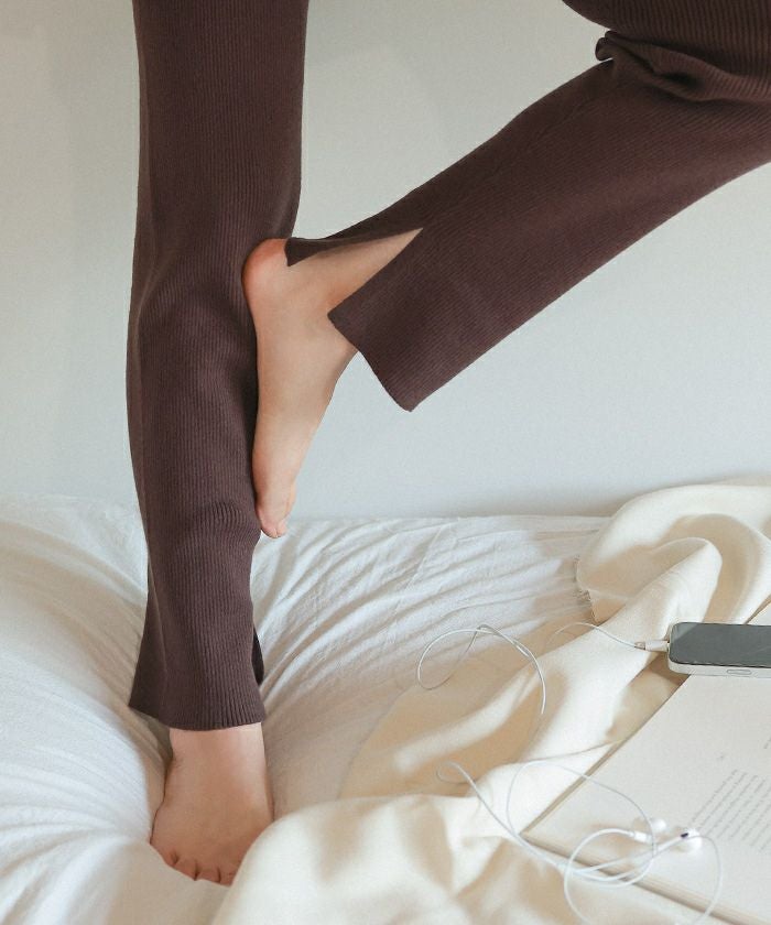 肌触りが最高です。肌に触れているところが柔らかく包まれていて心地よいです。ニットレギンスですので、やんわりと足の形に添います。むちむちの太ももは形を拾いますが記事がニットで厚いのでそこまで気になりません。 パジャマとして着るには申し分なさそうです。 スラリとした方であれば部屋着にするにはもったいかいかもしれません