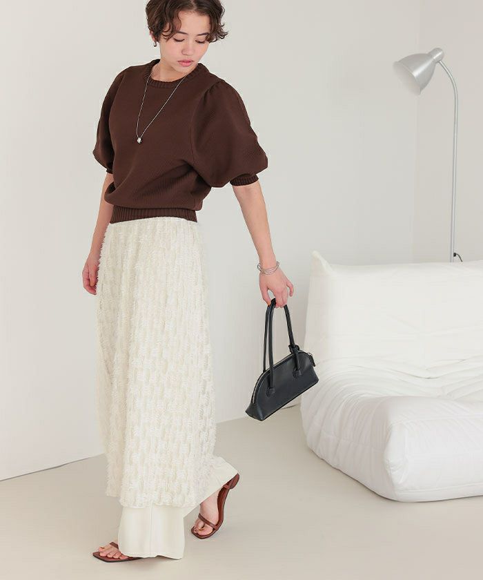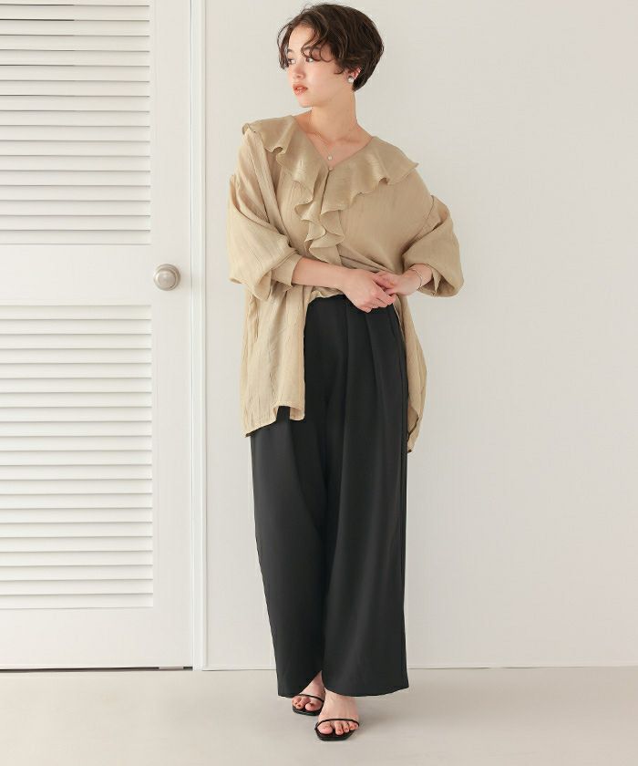 ・ウエストにタックが入っているので、気になる腰回りやヒップを綺麗にカバーしてくれます