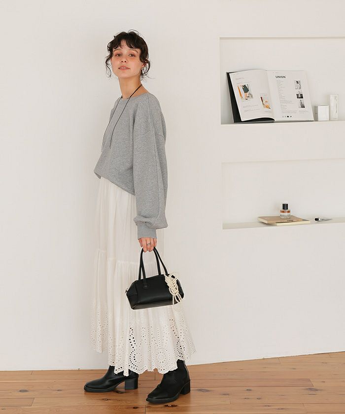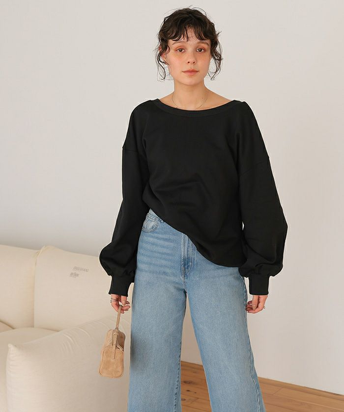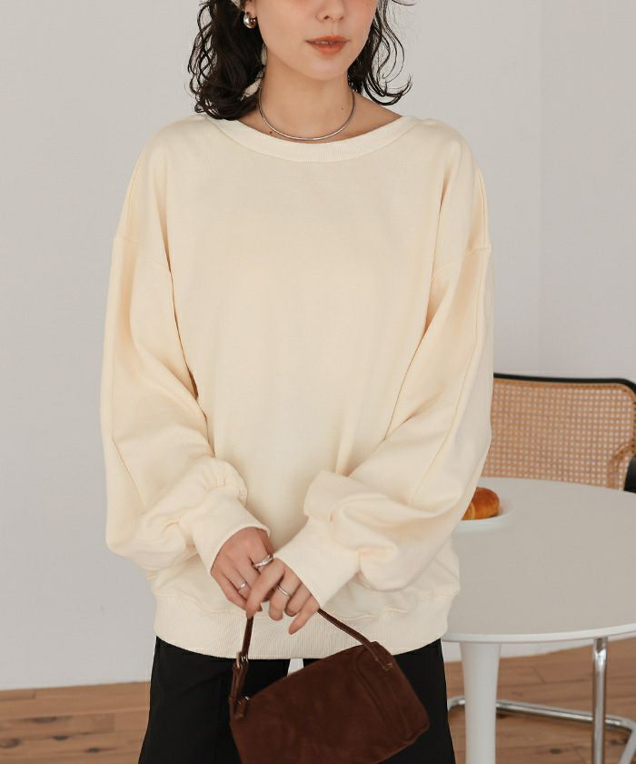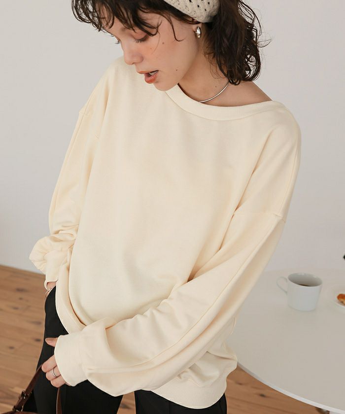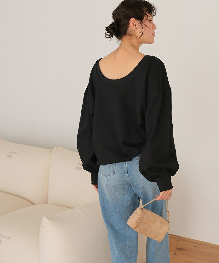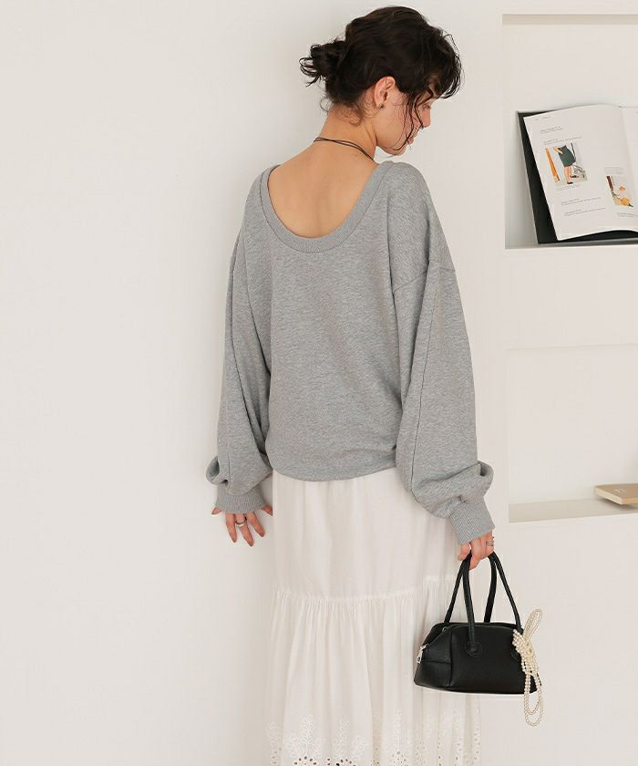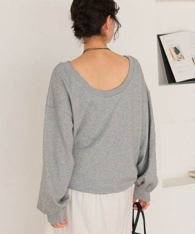 ・一見ベーシックなスウェットトップスですが、バックが大きく開いており抜け感がある