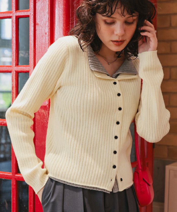 ・ニットを重ねたようなレイヤードデザインと配色使いがポイントの1枚で着映えするニットトップス