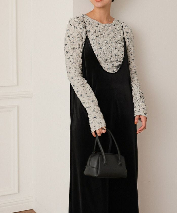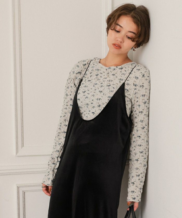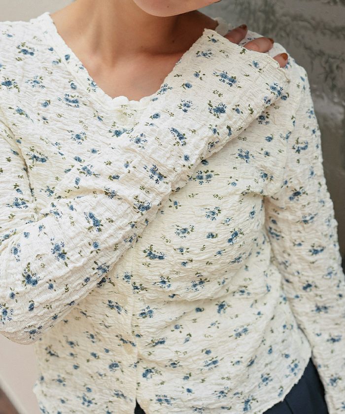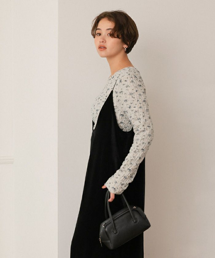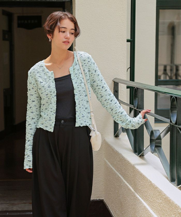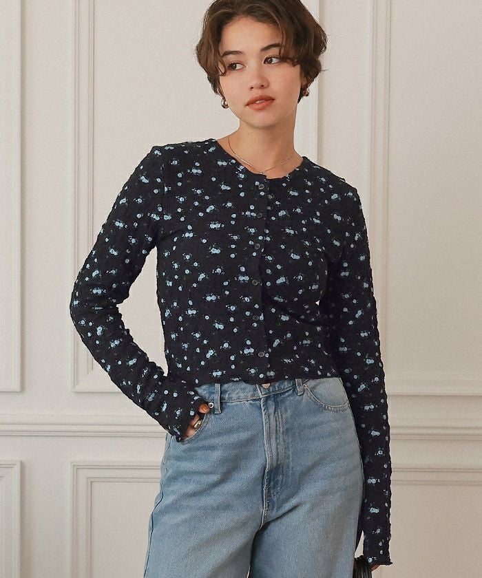 ・凸凹した表面感のある素材に、トレンド感のあるフラワープリントが施された生地で可愛い