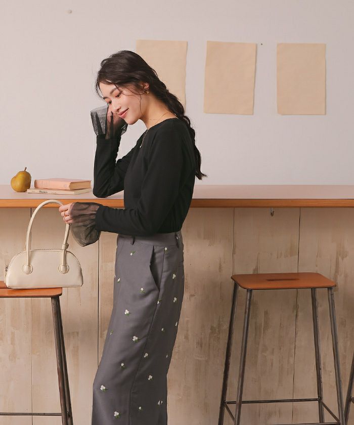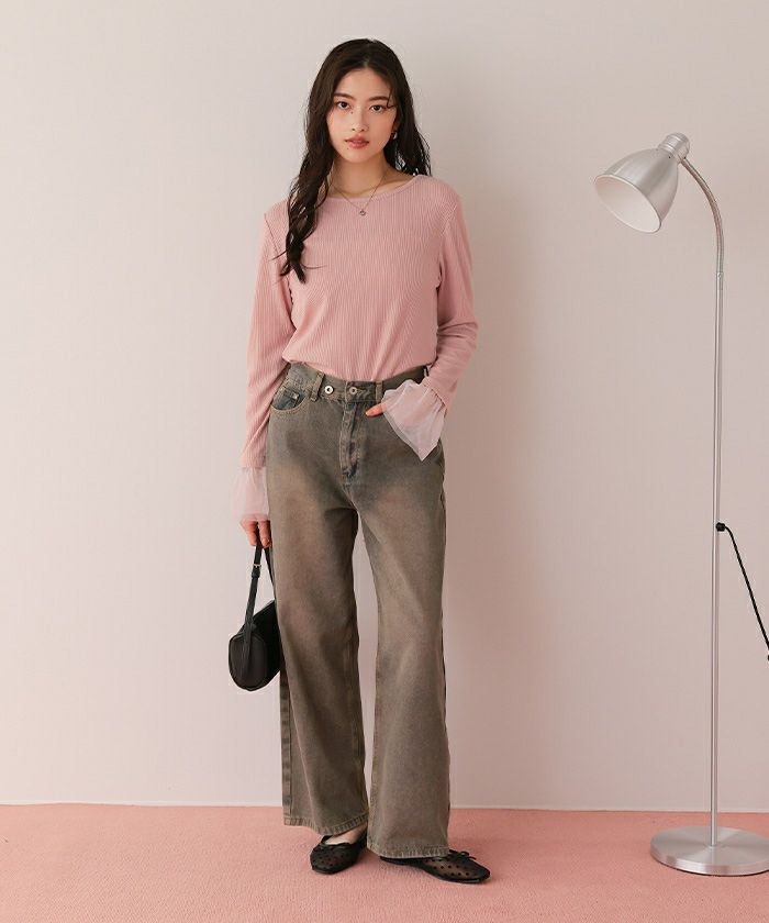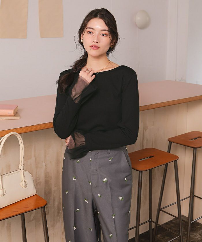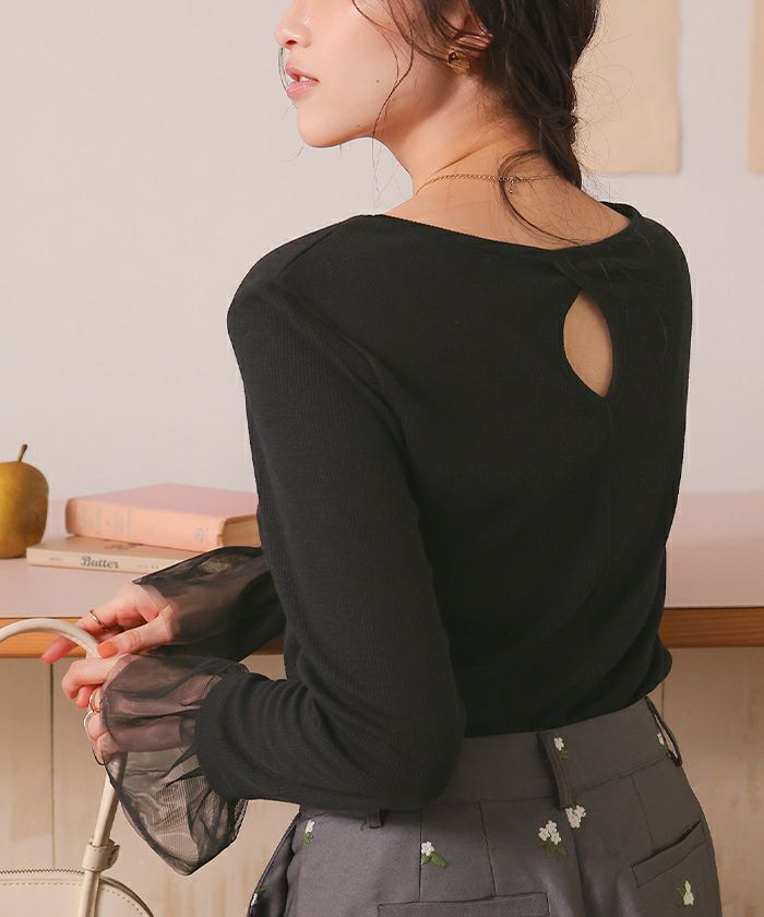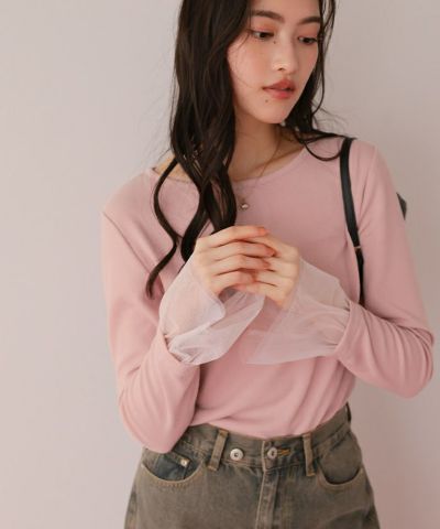 ・袖口のチュールフリルが手元を華やかに彩る、大人フェミニンなカットソートップス