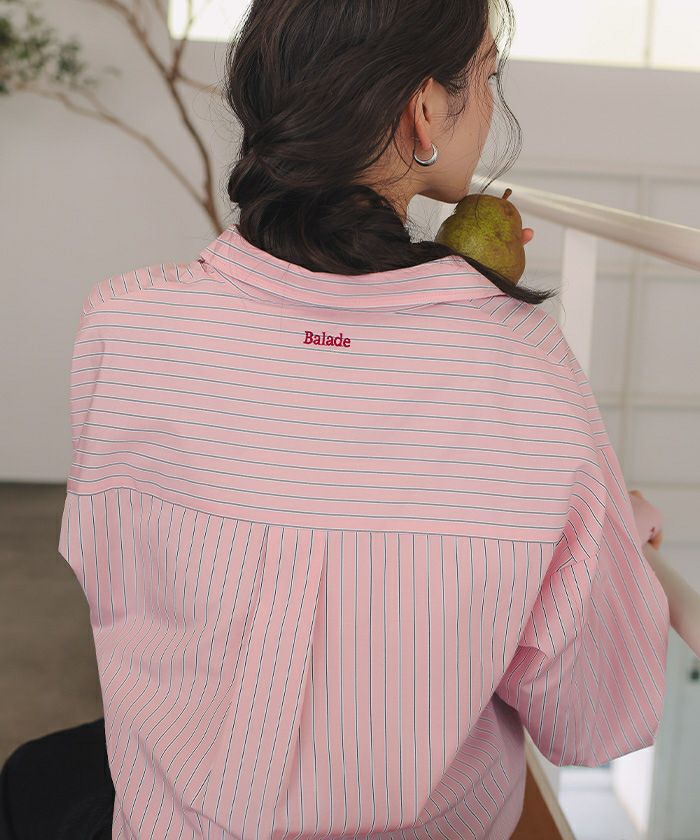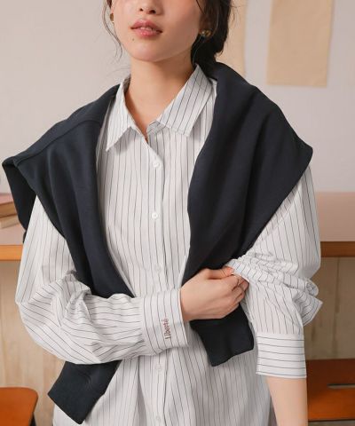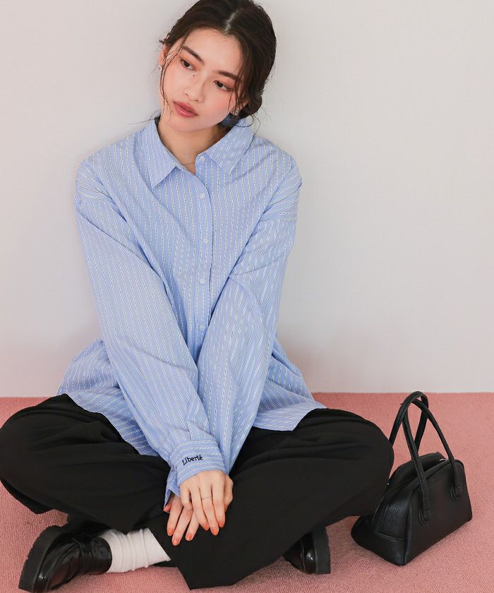 ・繊細な刺繍をストライプ生地にのせた、大人のこなれシャツ