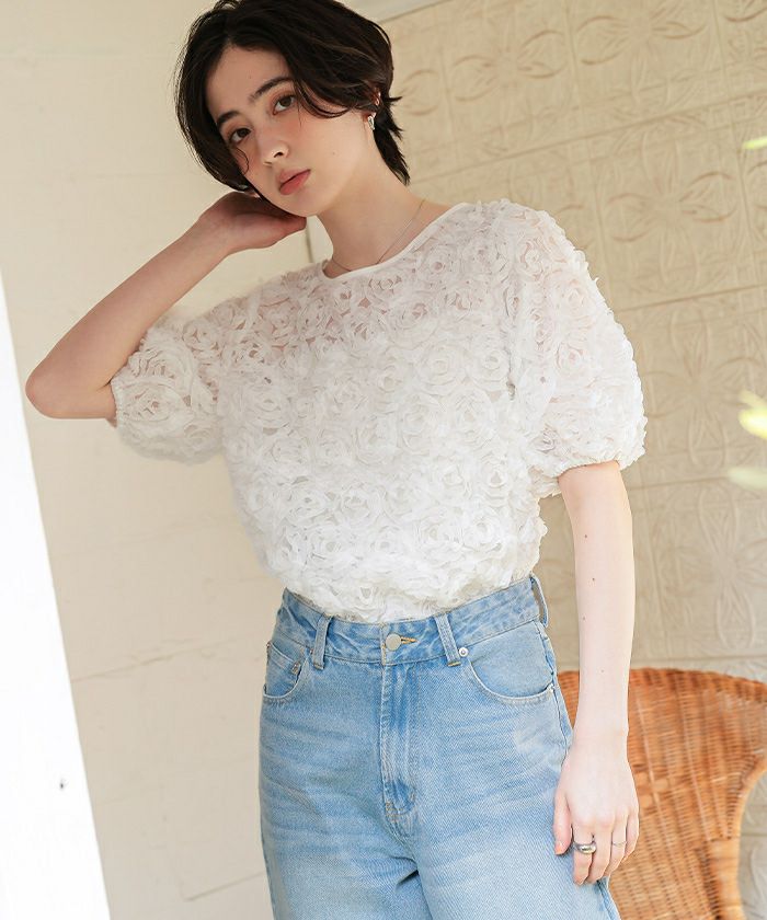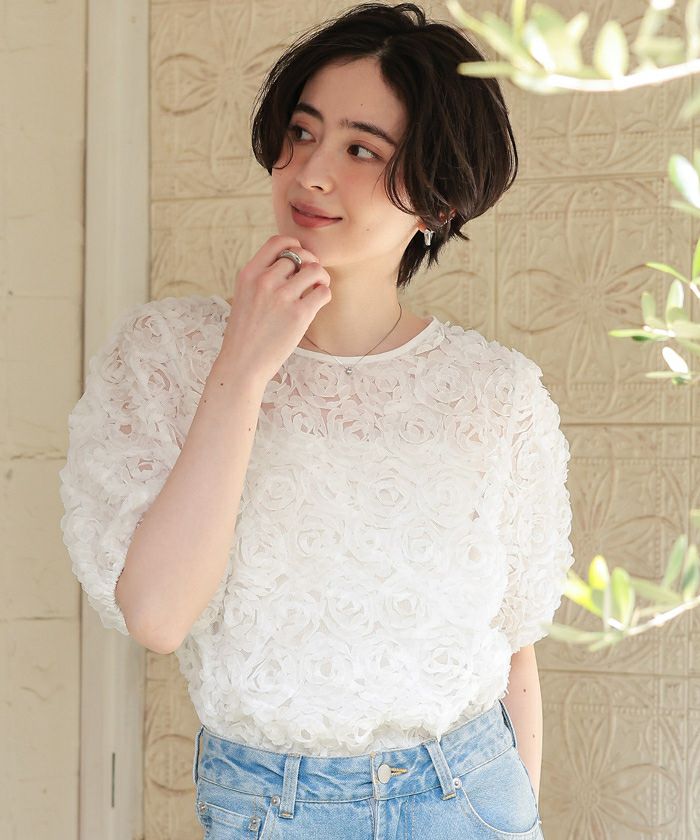 ・繊細なフラワーチュールが視線を惹きつける、着るだけで華やぐ主役トップス