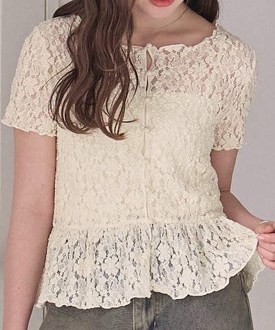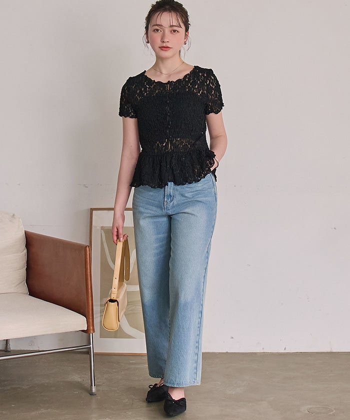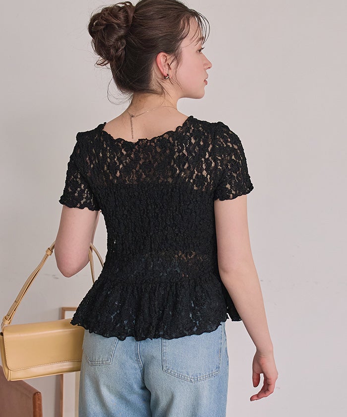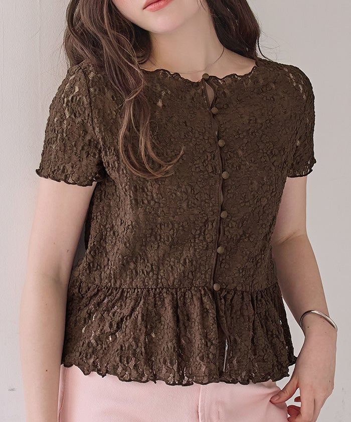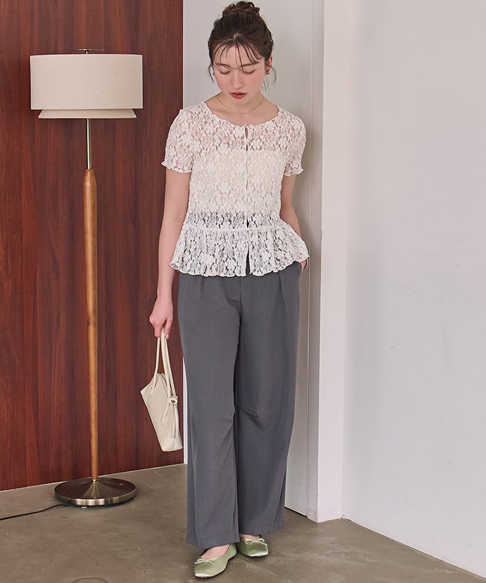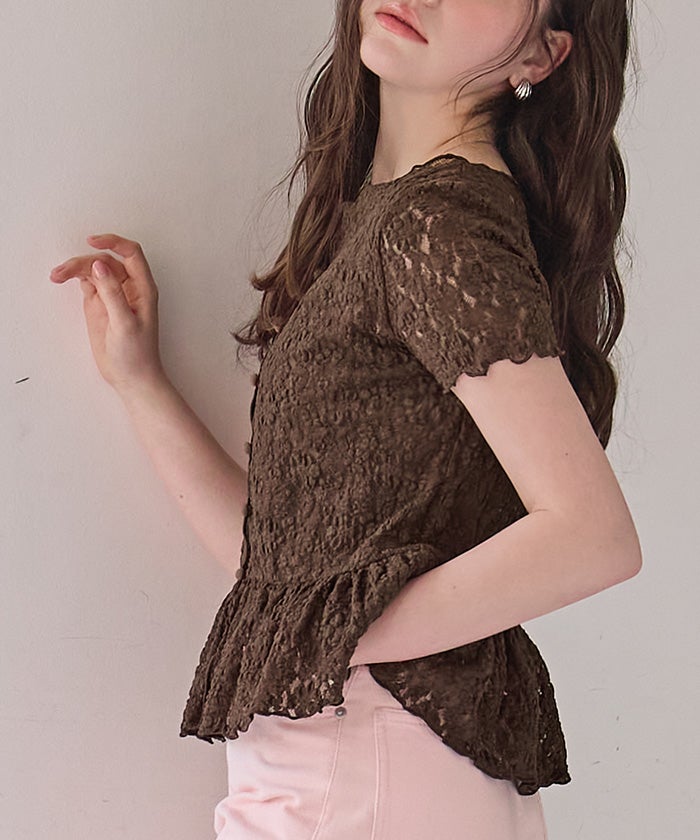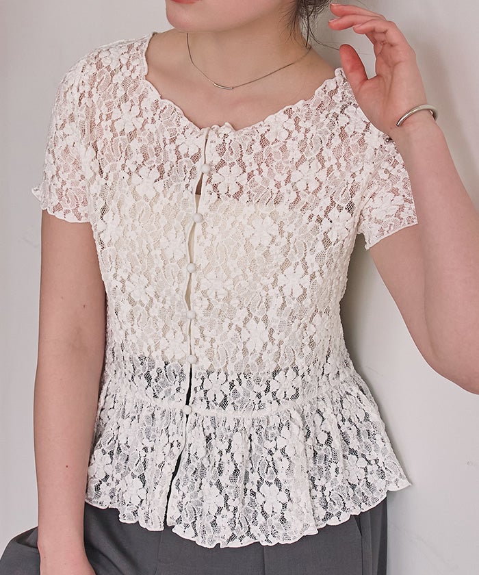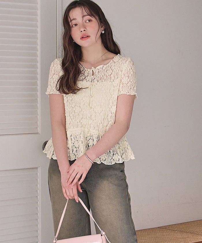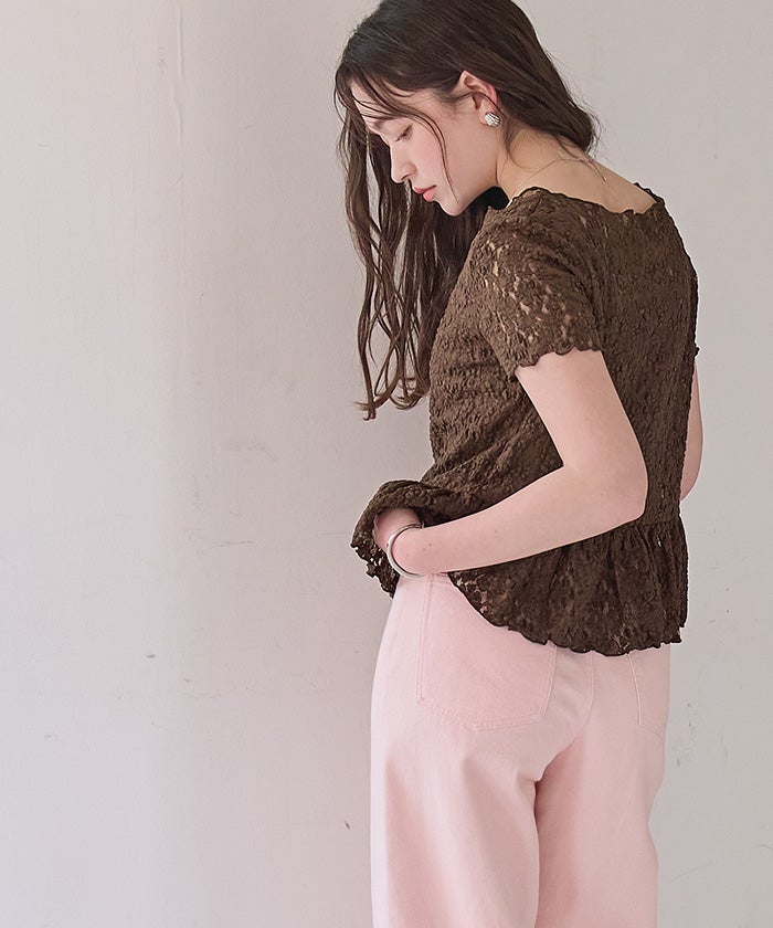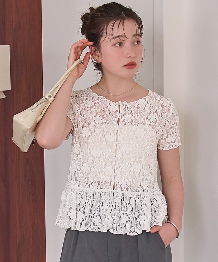 ・繊細なレースと裾フリルが揺れて、さりげなく甘さをまとえるフェミニントップス