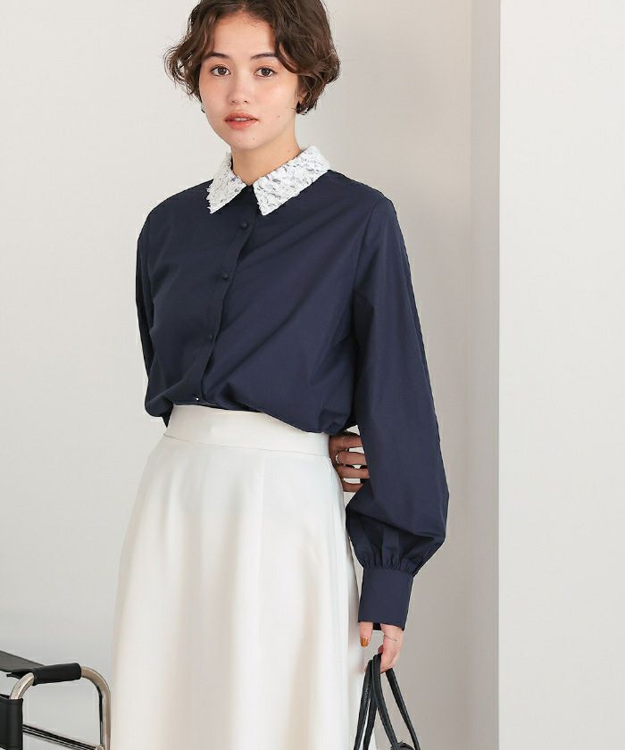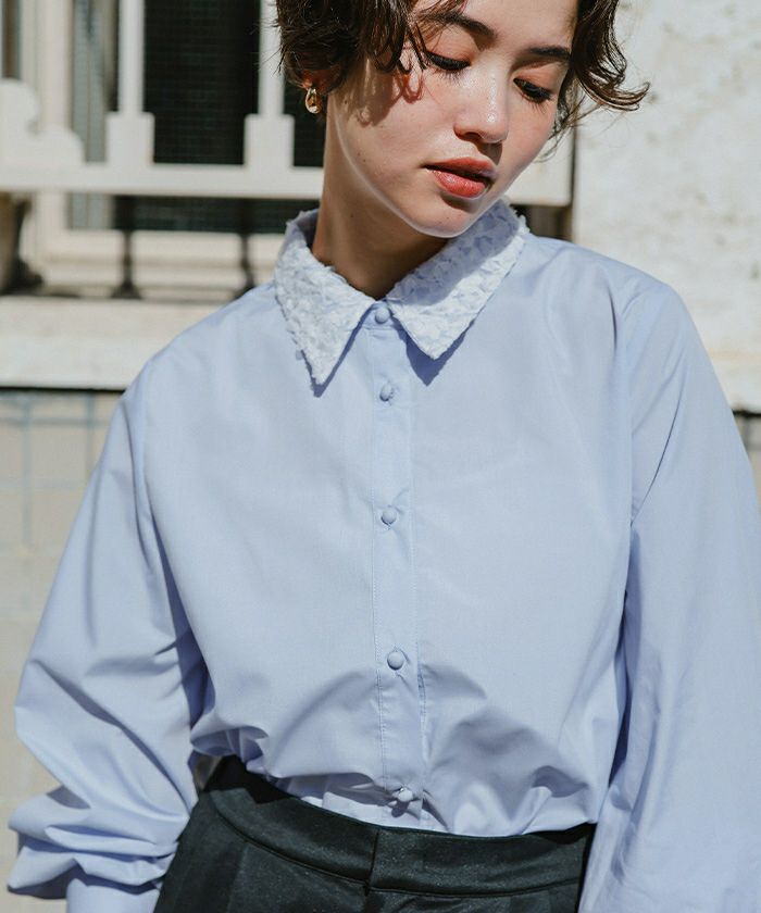 ・繊細なフラワーレースの襟元が顔まわりを華やかに
