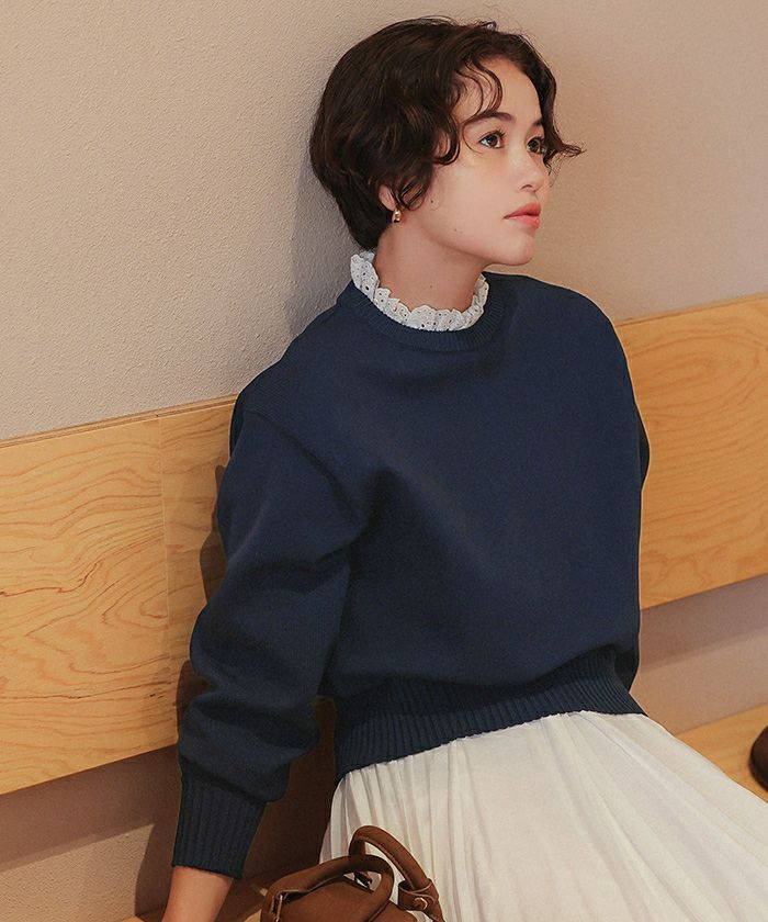 ・クラシカルな取り外しのできる襟デザインで、きちんと感とトレンドを両立したニットプルオーバー