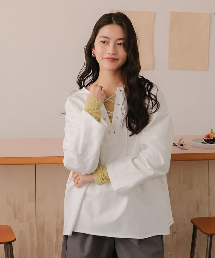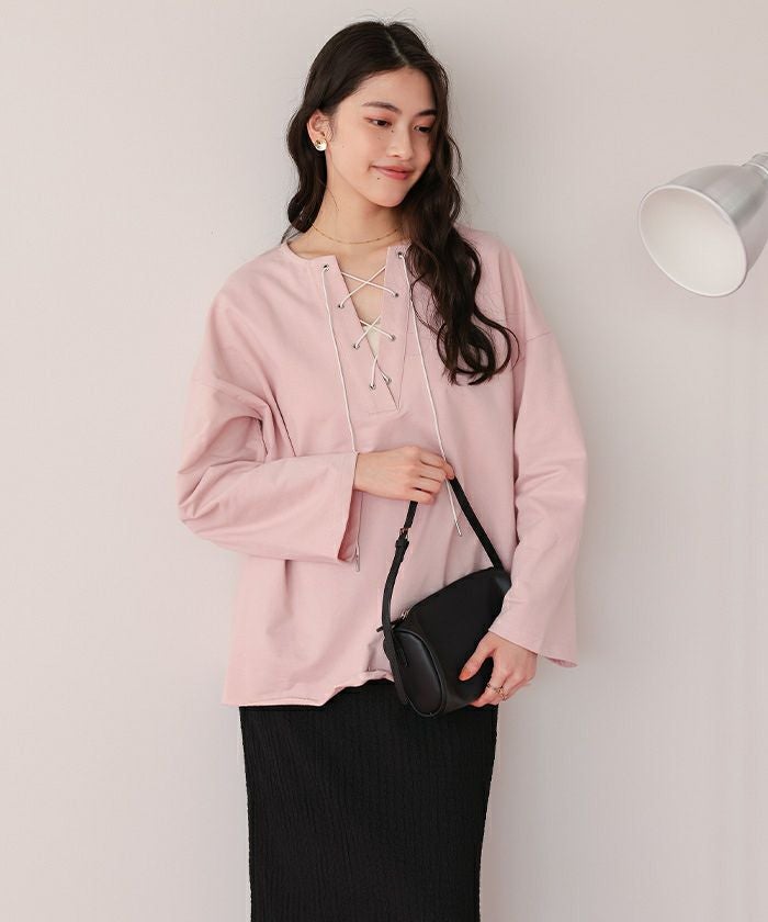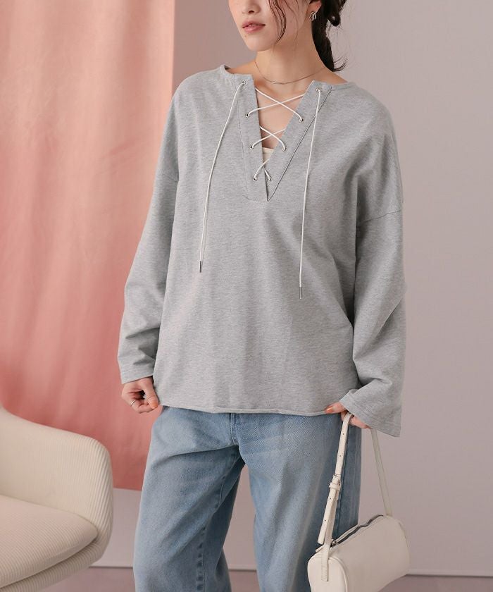 レースアップデザインプルオーバー