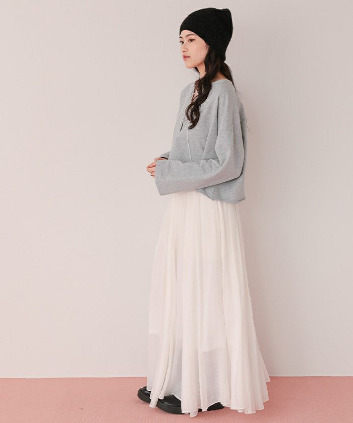 ・ややゆとりのあるシルエットで体のラインを拾わず、抜け感のあるこなれスタイルに