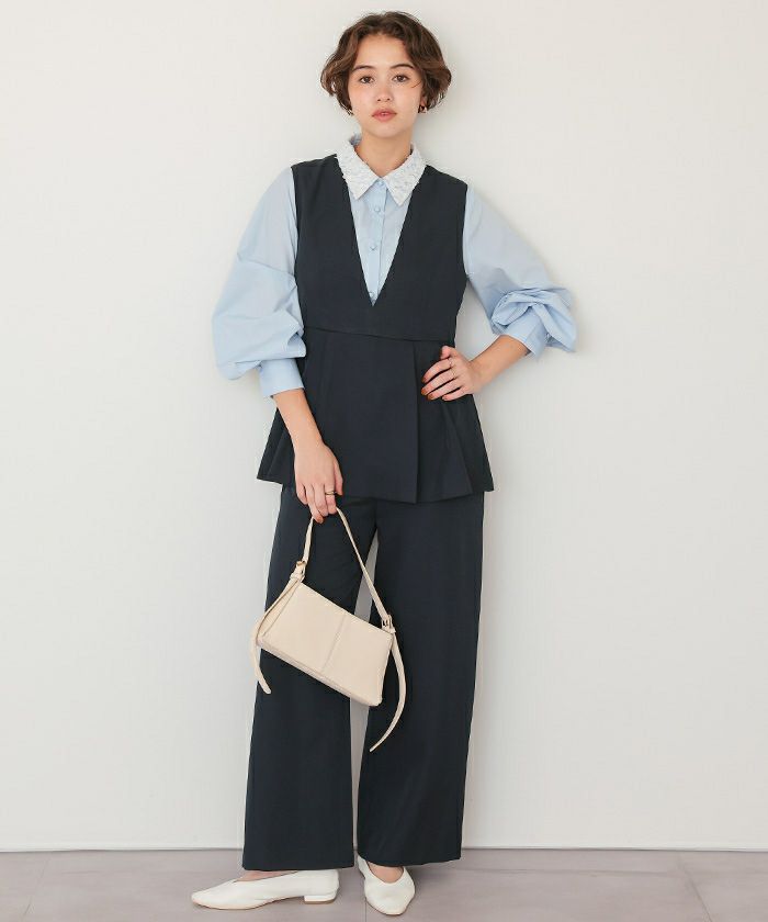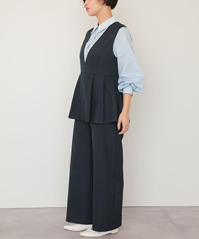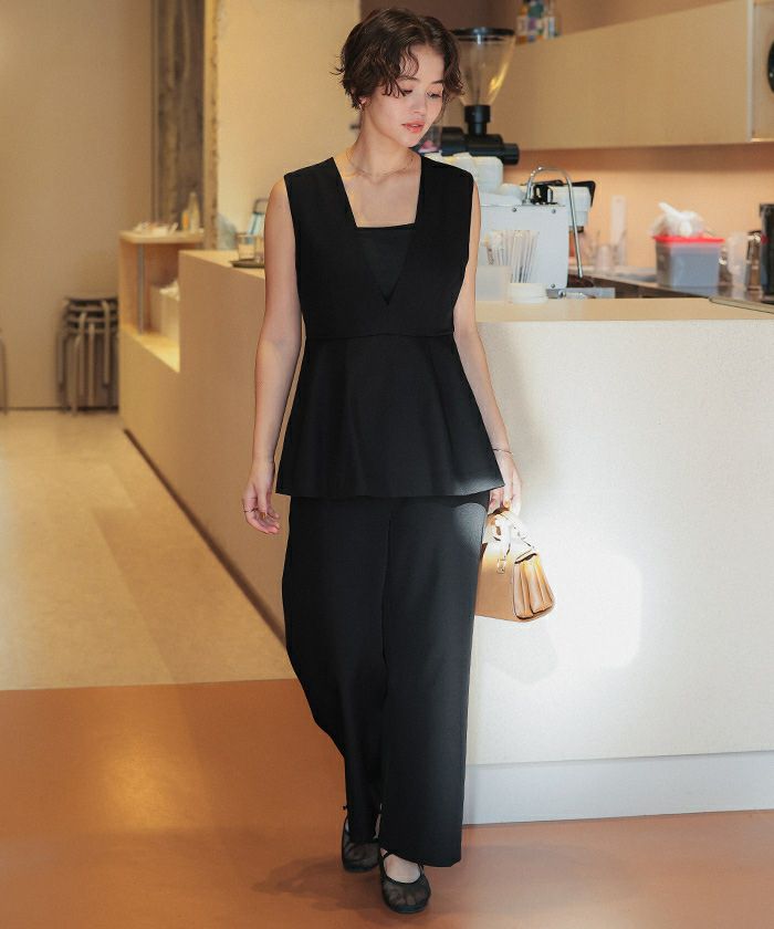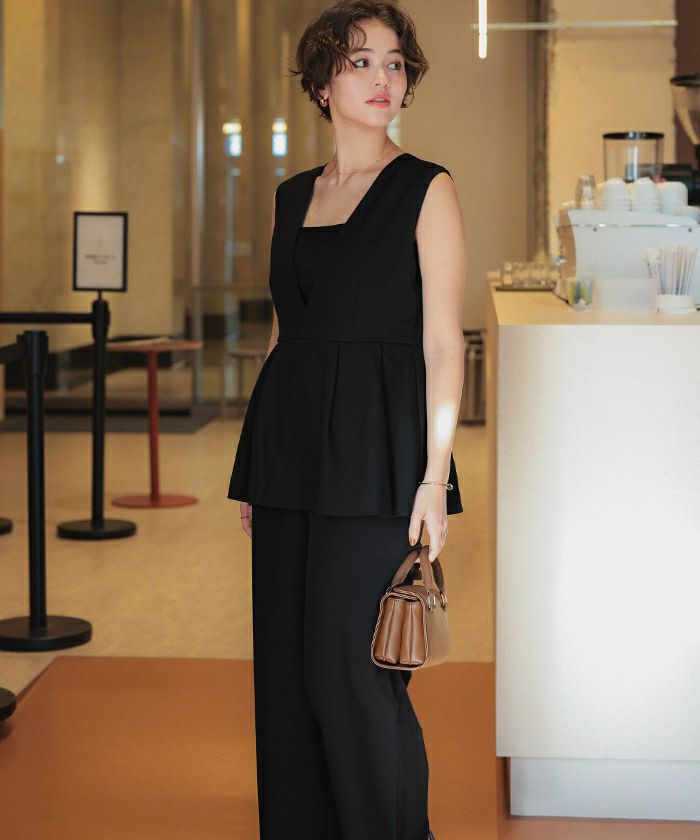 ・ペプラムトップスとパンツがドッキングがされたオールインワンなのでこれ1枚でセットアップコーデが叶う