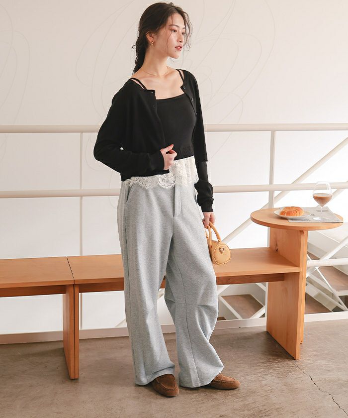 ・スウェット特有のカジュアルさは残しつつ、スラックスデザインがこなれ感を演出