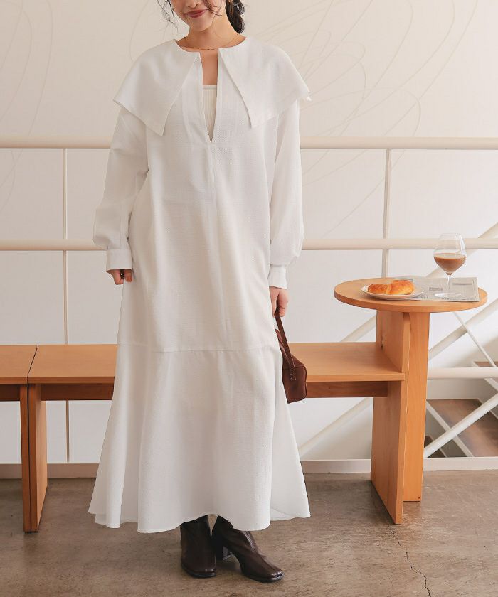 ビッグカラーマーメイドシルエットワンピース
