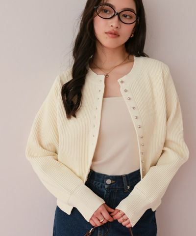 ・ベーシックながらも小さなシルバー釦が目を惹く
