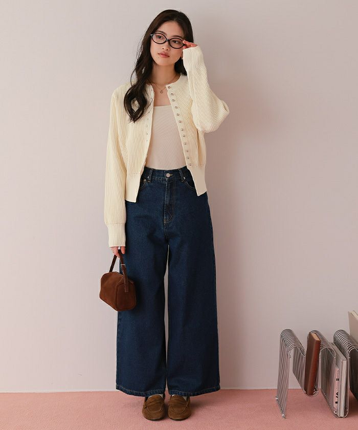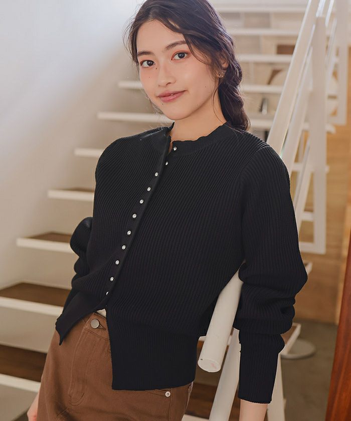 ・縦ラインの編み地がすっきり見えを叶え、着やせ効果も◎