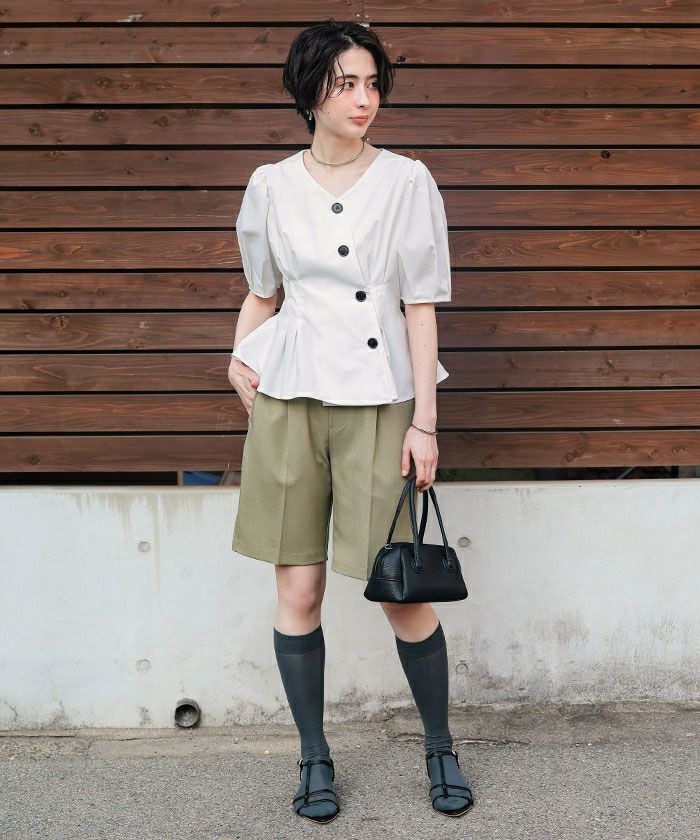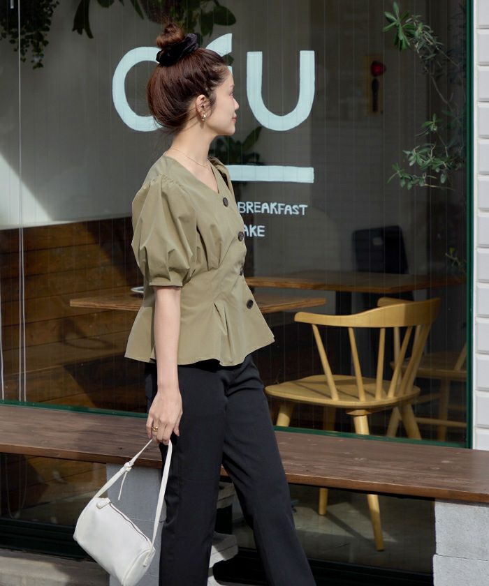 ・配色釦で全体を引き締めてくれ、カジュアルさもアップ