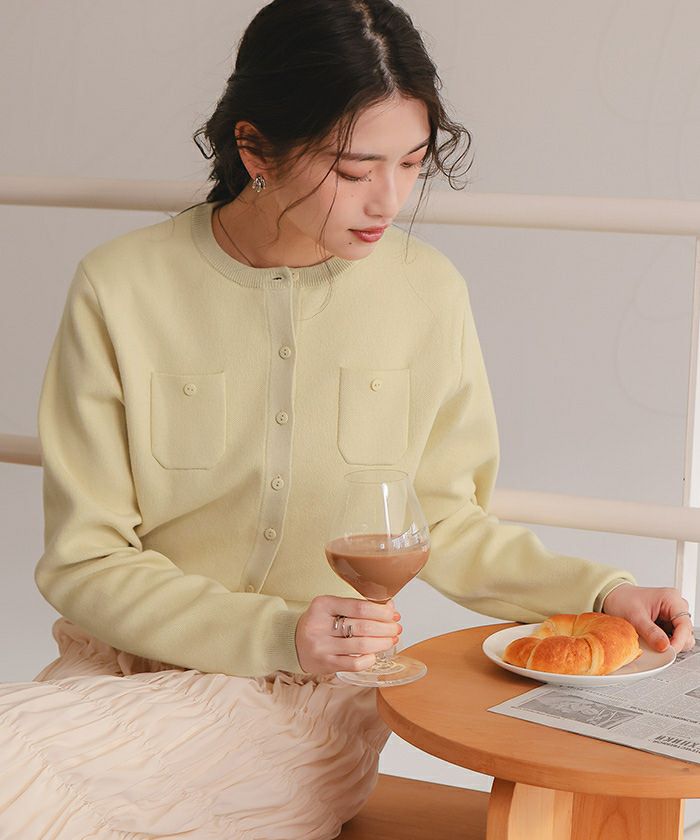 今年はカーディガンが沢山欲しくて・・・ざっくりカーディガンは別で購入したのでコンパクトなデザインが欲しくてこちらを選びました!胸元のポケットが良いアクセントになってくれています!かわいい♪モデルさんみたいにレースと合わせて着たいです!