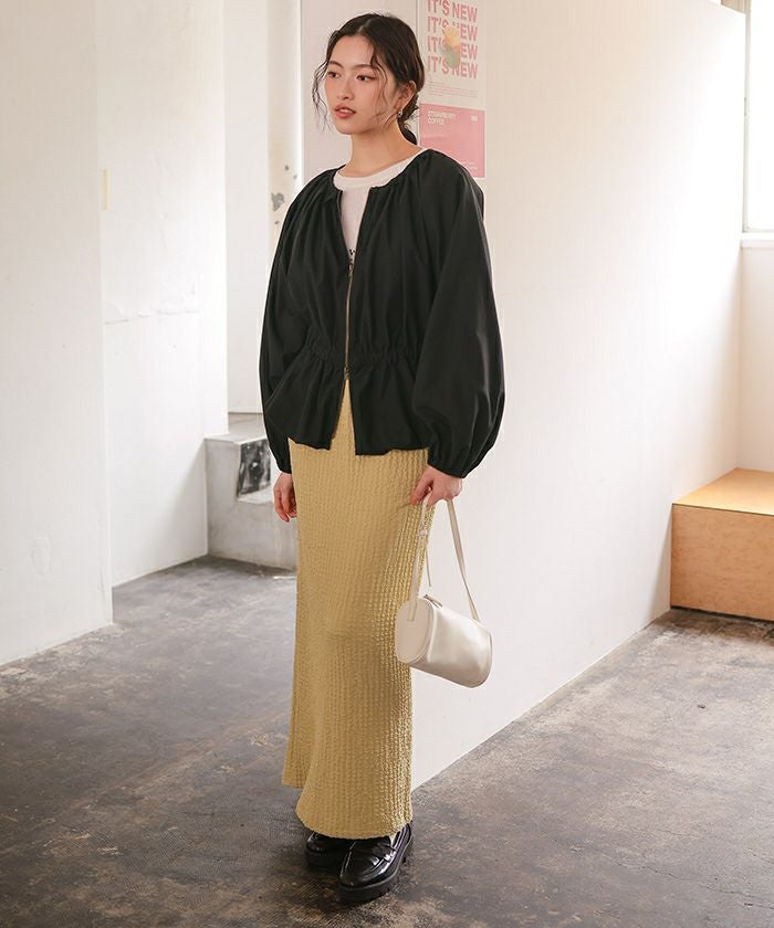 ・ボリューム感のある袖と気になる腰回りをしっかりカバーしてくれる丈感で、女性らしくやわらかさのあるデザイン