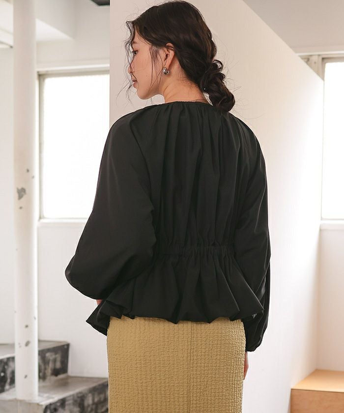 ・上品で程よいハリ感で、たっぷりギャザーもだらしなく見えない洗練されたペプラムシルエット