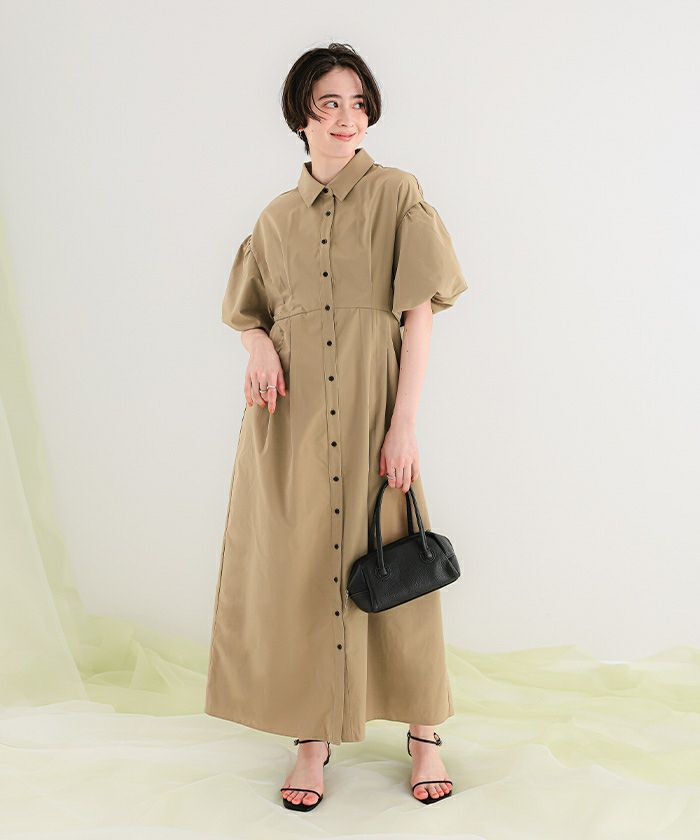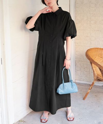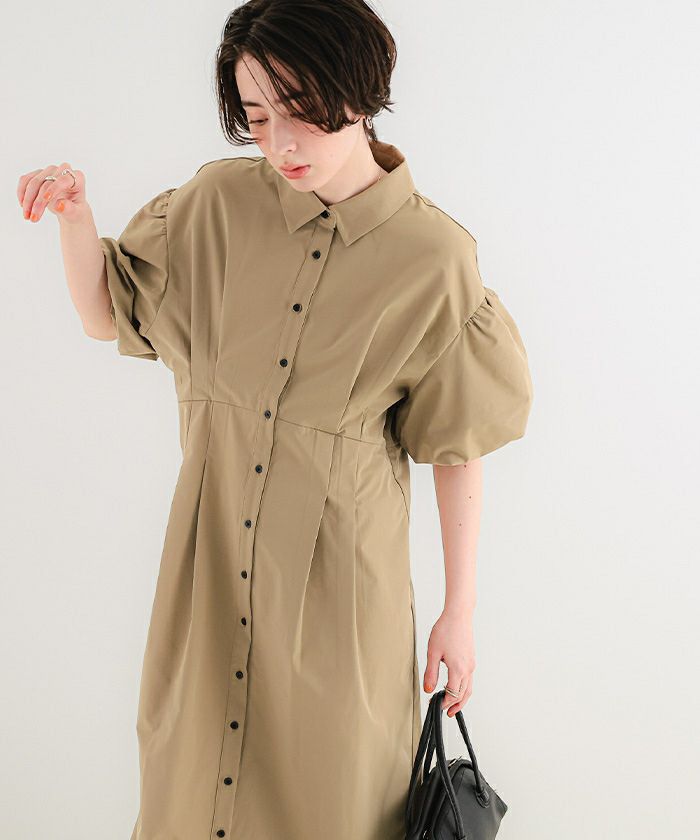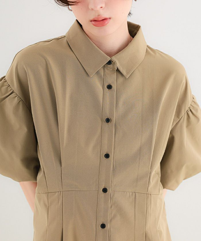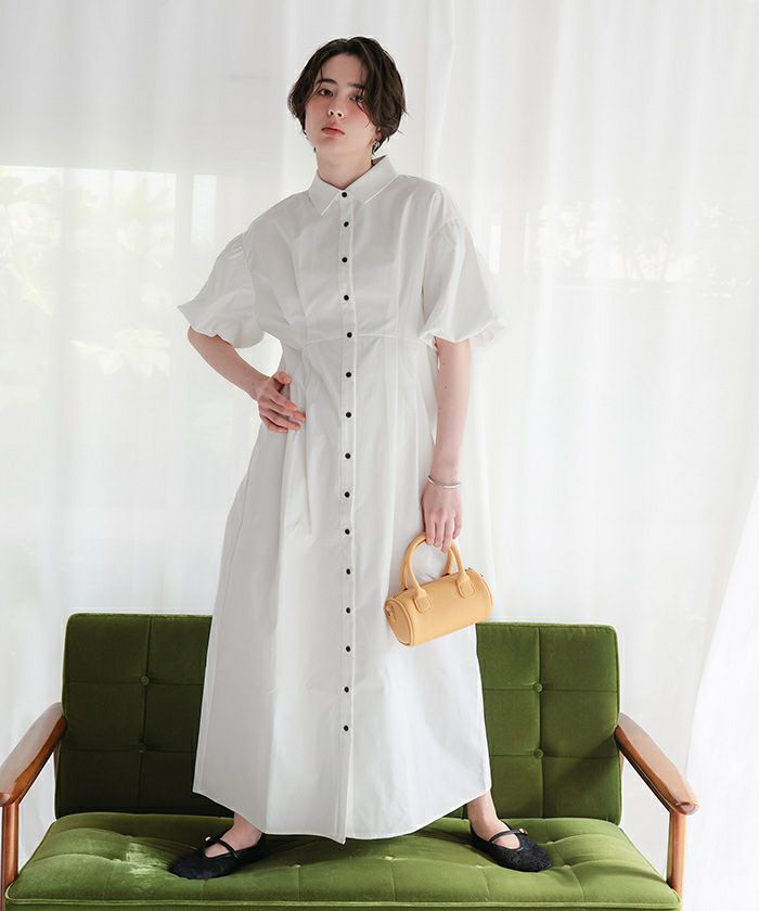 パフスリーブシャツワンピース