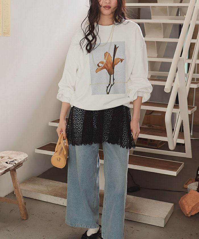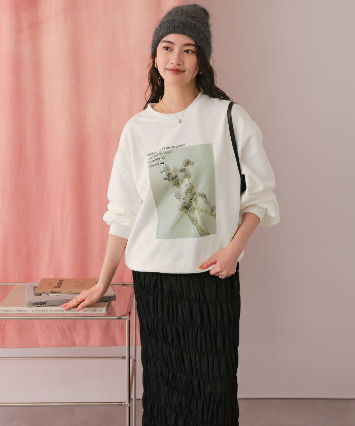 ・季節を問わず着まわせる、フォトプリントオーバーサイズスウェット