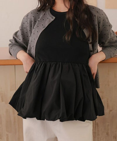 カップ付きバルーンペプラムトップス